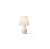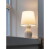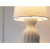 砂のようなざらつきを施した磁器のベースとスムースなファブリックセードの組み合わせ。質感のコントラストを最大限に引き出しているのが、シンプルなシルエットとワントーンが魅せる統一感。連続するゆるやかなふくらみや、フラワーベースのようなくびれが作る儚げな陰影が、静けさの中にほのかな優しさを感じさせます。