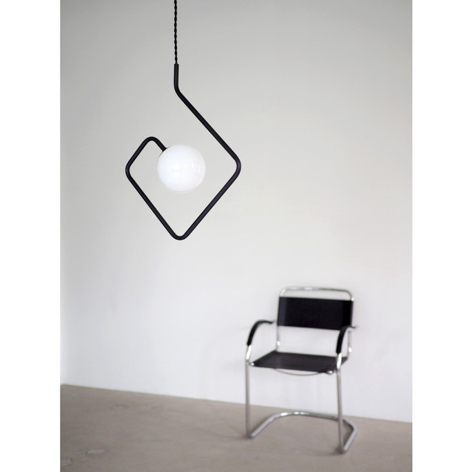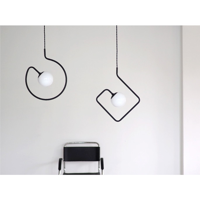 中央の光源をぐるりと囲う迷路のようなデザインは、2次元的な要素とユニークな奥行きを見せてくれます。浮遊感のある絶妙なバランスが特徴的でインパクトは抜群。見る角度によって球体ガラスとブラックのパイプが交差し異なるシルエットを見せます。お部屋の雰囲気をいつも新鮮なものにしてくれるアイコニックな存在です。