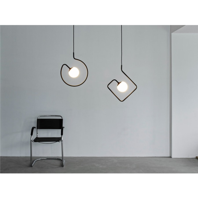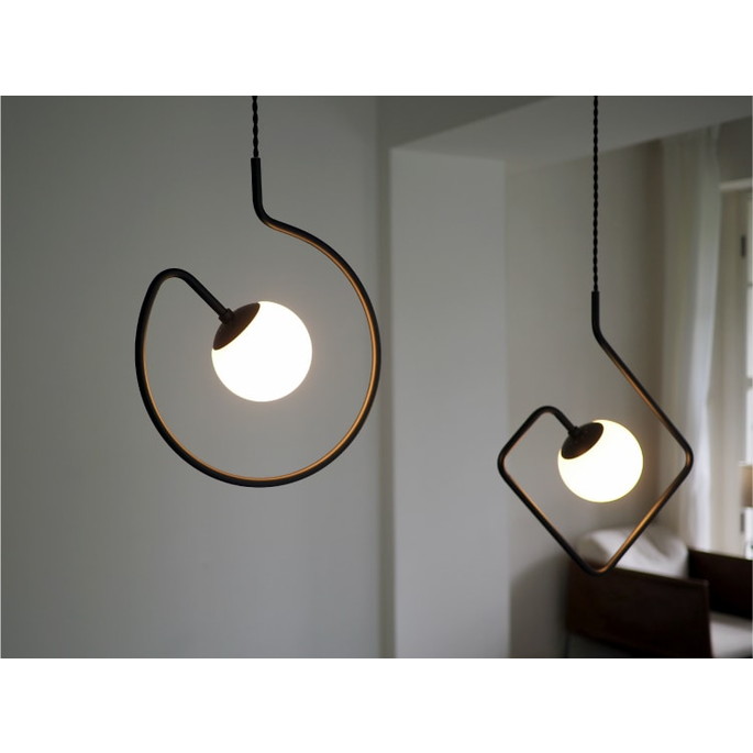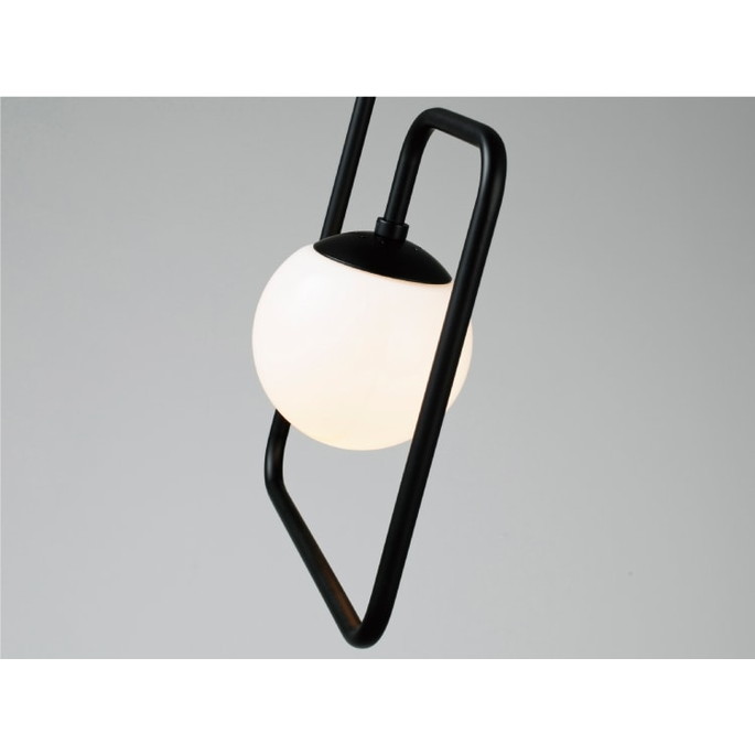 中央の光源をぐるりと囲う迷路のようなデザインは、2次元的な要素とユニークな奥行きを見せてくれます。浮遊感のある絶妙なバランスが特徴的でインパクトは抜群。見る角度によって球体ガラスとブラックのパイプが交差し異なるシルエットを見せます。お部屋の雰囲気をいつも新鮮なものにしてくれるアイコニックな存在です。