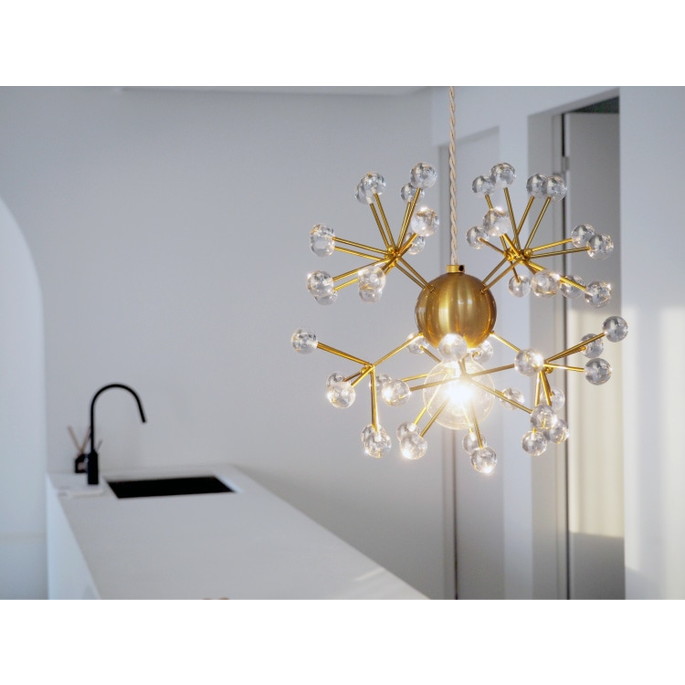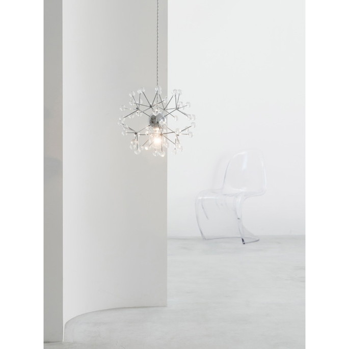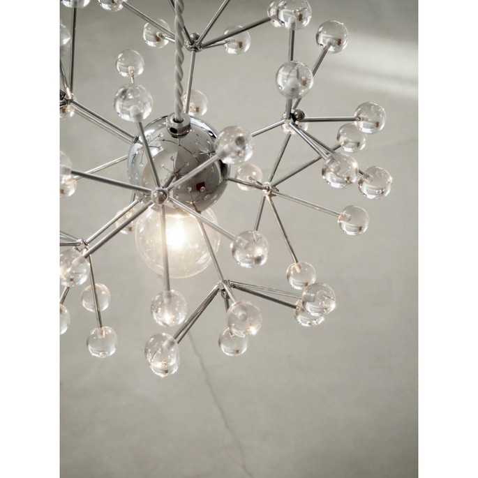 | | 電球の光がクリアパーツに乱反射し、シャンデリアのように煌びやかな輝きを放ちながら、水滴のようなピュアな透明感や、雪の結晶を思わせる繊細さを感じさせます。装飾の位置や長さ、固定するネジも丸いボール状にするなど、細部のサイズ感やバランスにもこだわりました。※こちらはLEDの販売ページです |