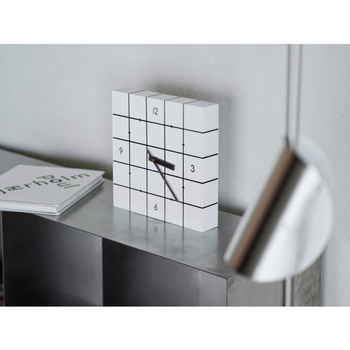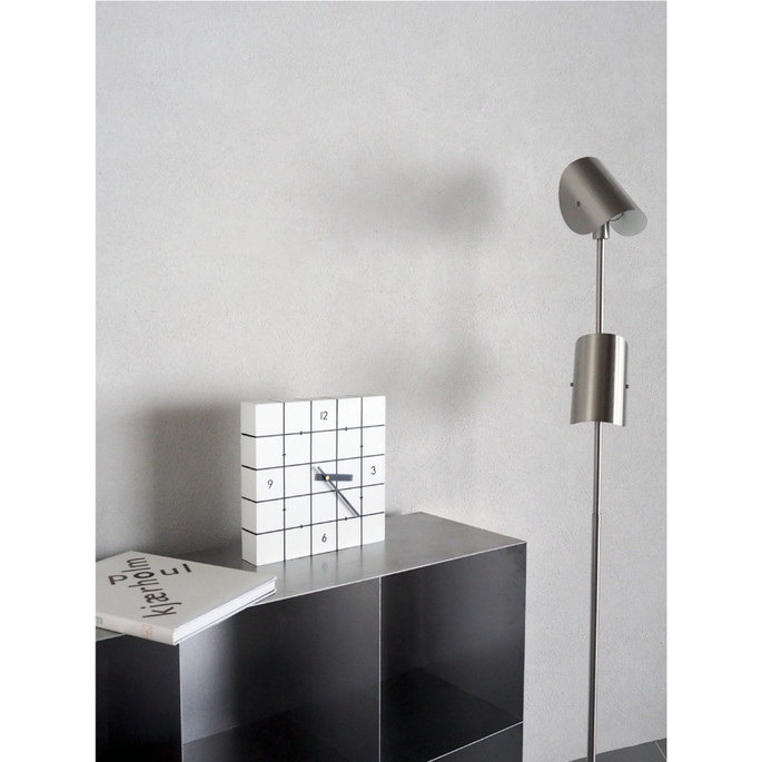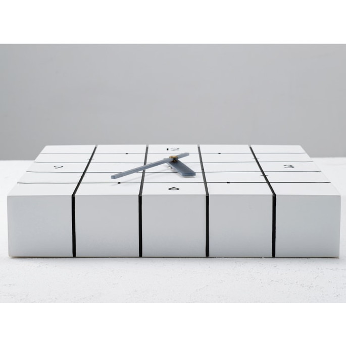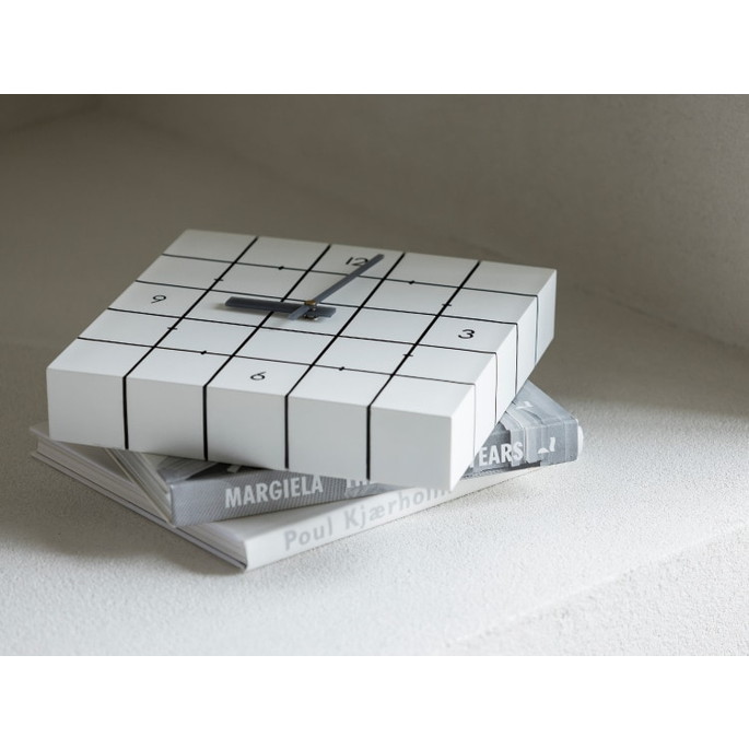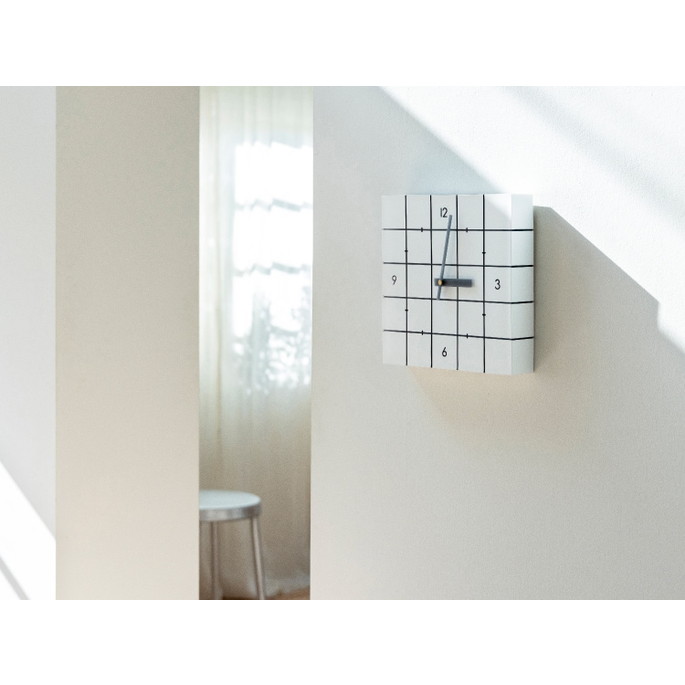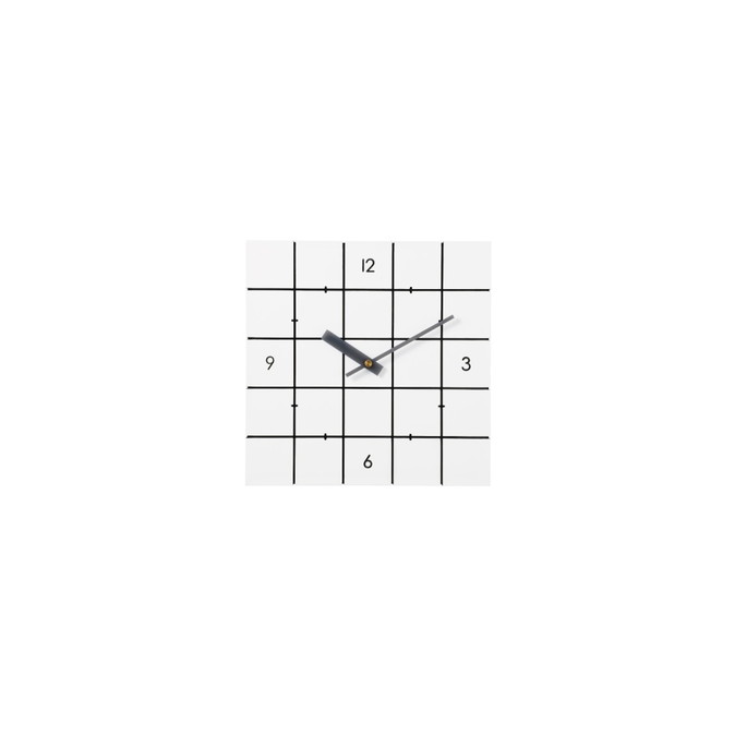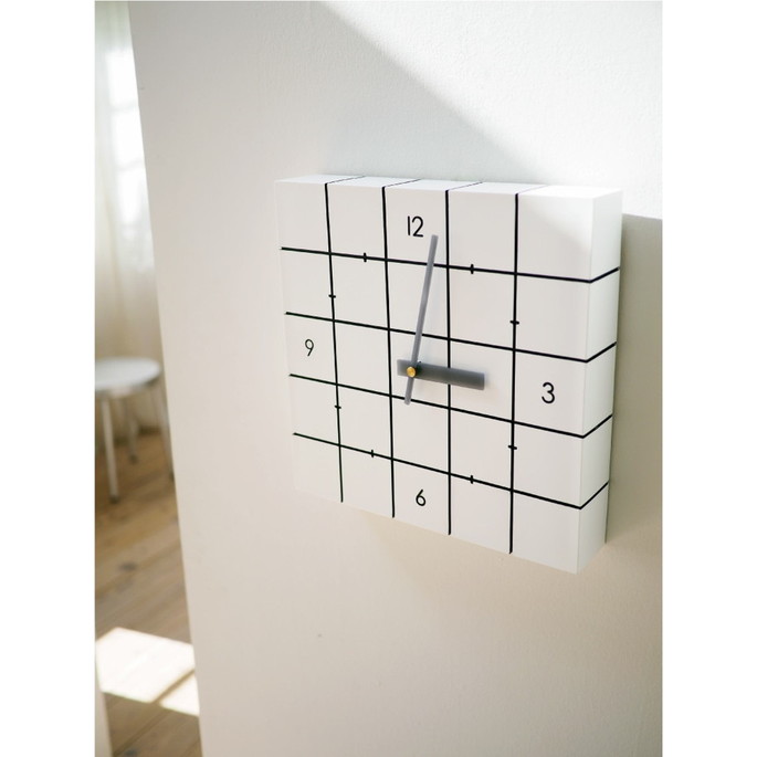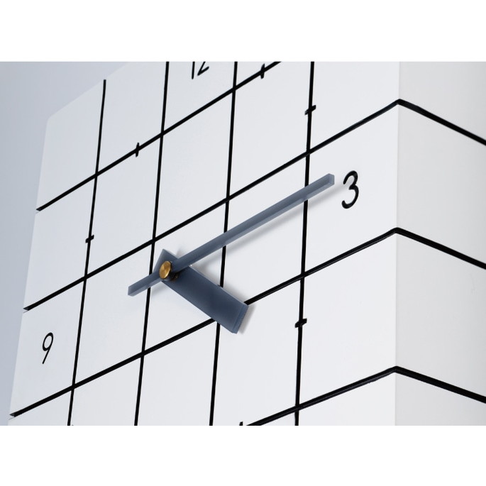 規則正しく並んだ直線が縦と横に走る方眼紙と、針の軌道が円形になるアナログ時計を掛け合わせた実験的なデザイン。表現したかったのは、ふと図形に見えたり、その輪郭だけ切り取られて見えたり、2Dと3Dを行き来するような面白さ。モノトーンの文字盤に浮かぶのは半透明のグレーカラーの針が、整然と並ぶグラフチェックの上で絶妙な抜け感を添えています。