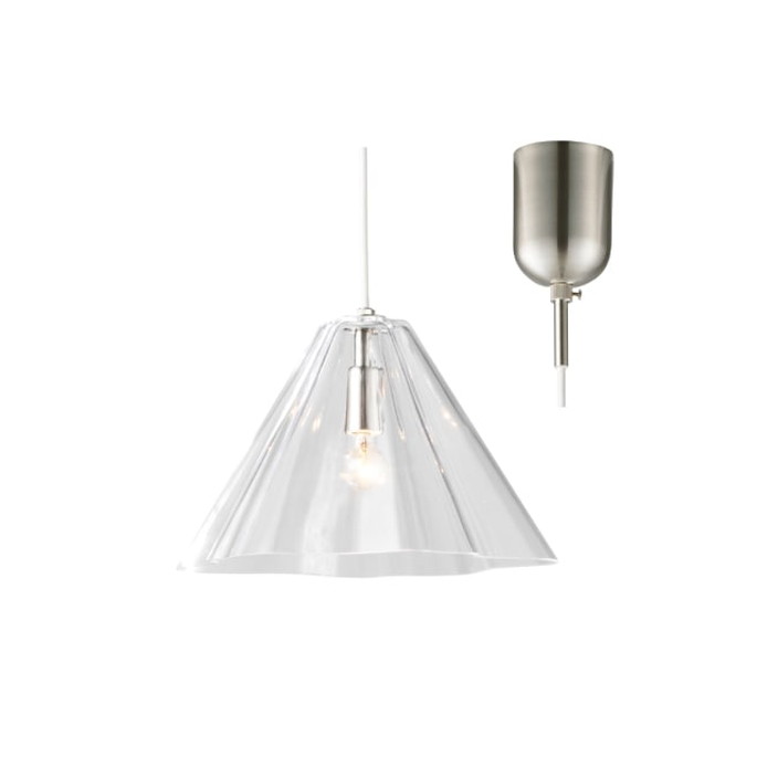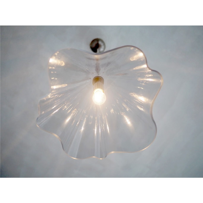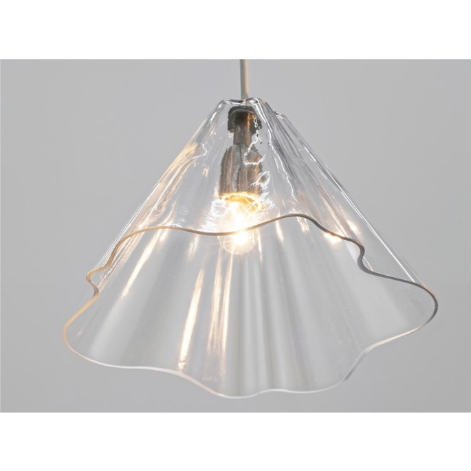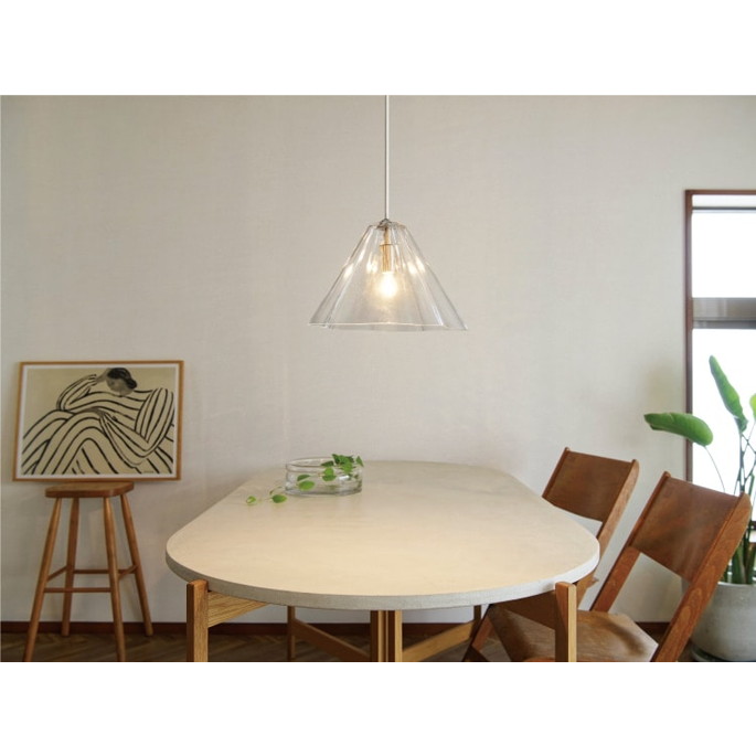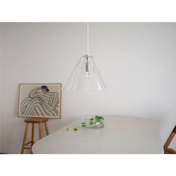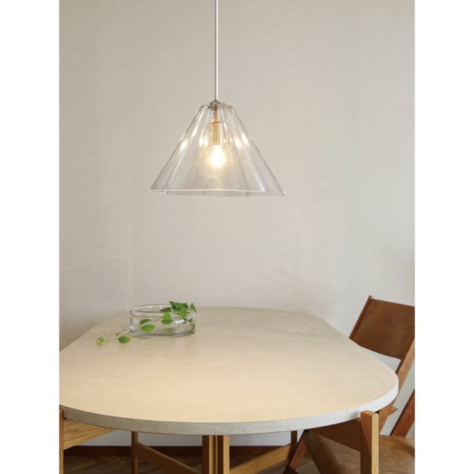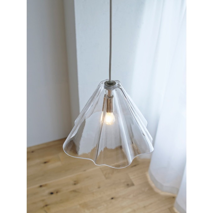 | | 布のような軽やかさとガラスの清潔感が上品な印象を与え、消灯させるとガラスの揺らぎをより鮮明に感じられます。透明感に華やかさを添えた、清楚なデザインになっております。 |