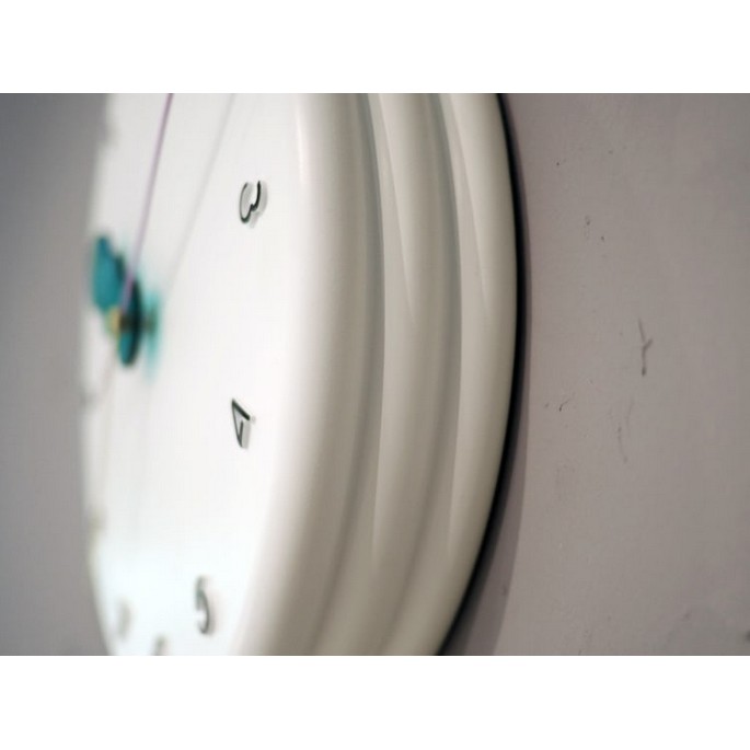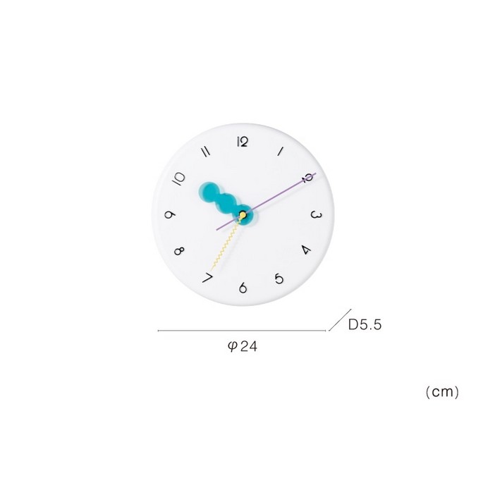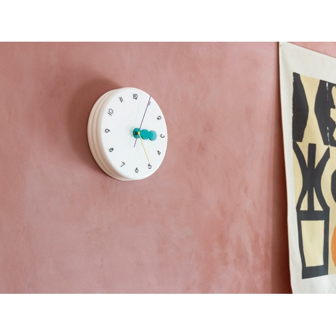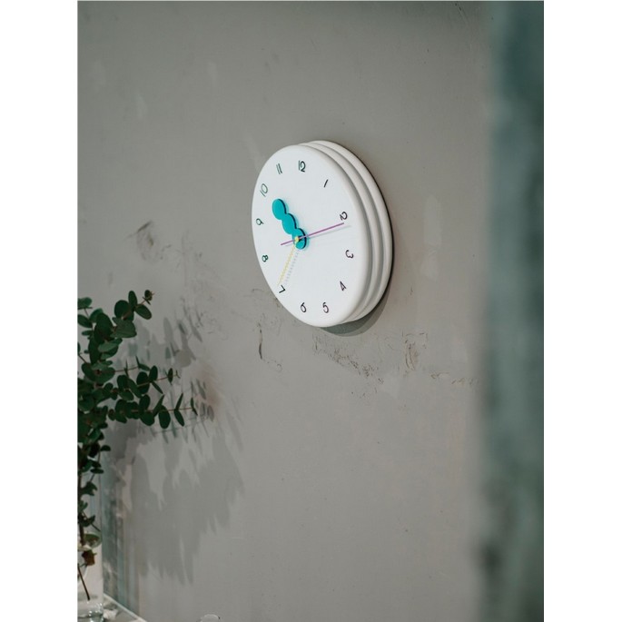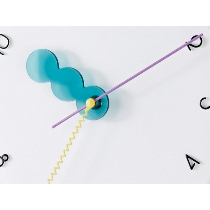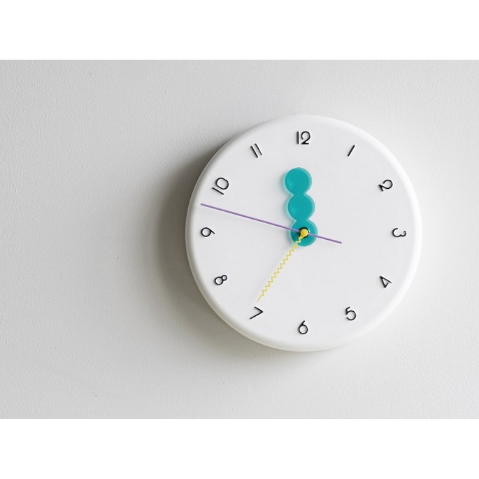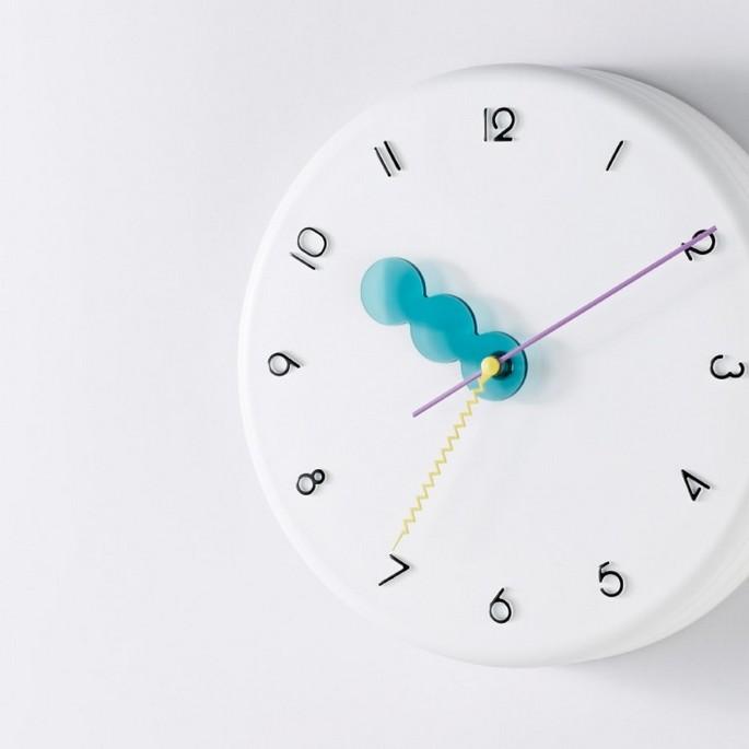 ふっくらとしたパンケーキを重ねたようなモコモコの文字盤に、◯◯◯の短針とギザギザの秒針、そして80年代を思わせるビビッドなカラーリングでレトロポップな装いに。どの角度から見てもユーモラスでチアフルなデザインにキュンがこぼれます。