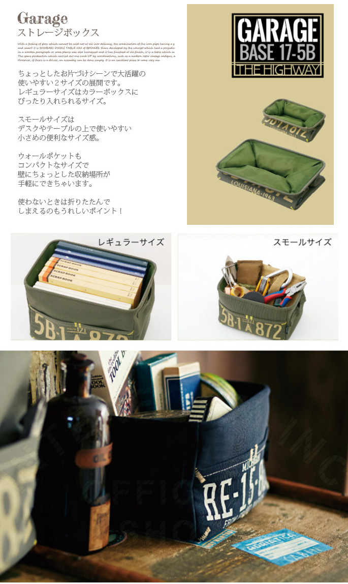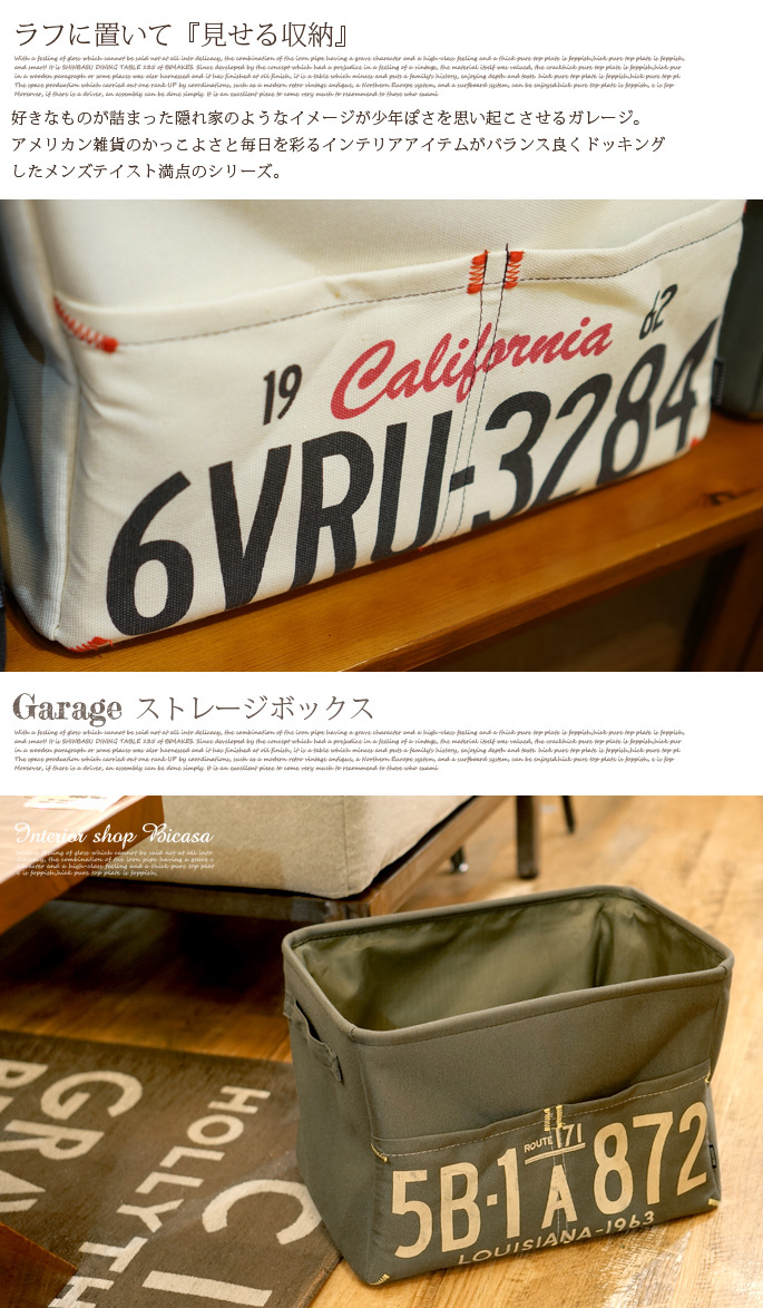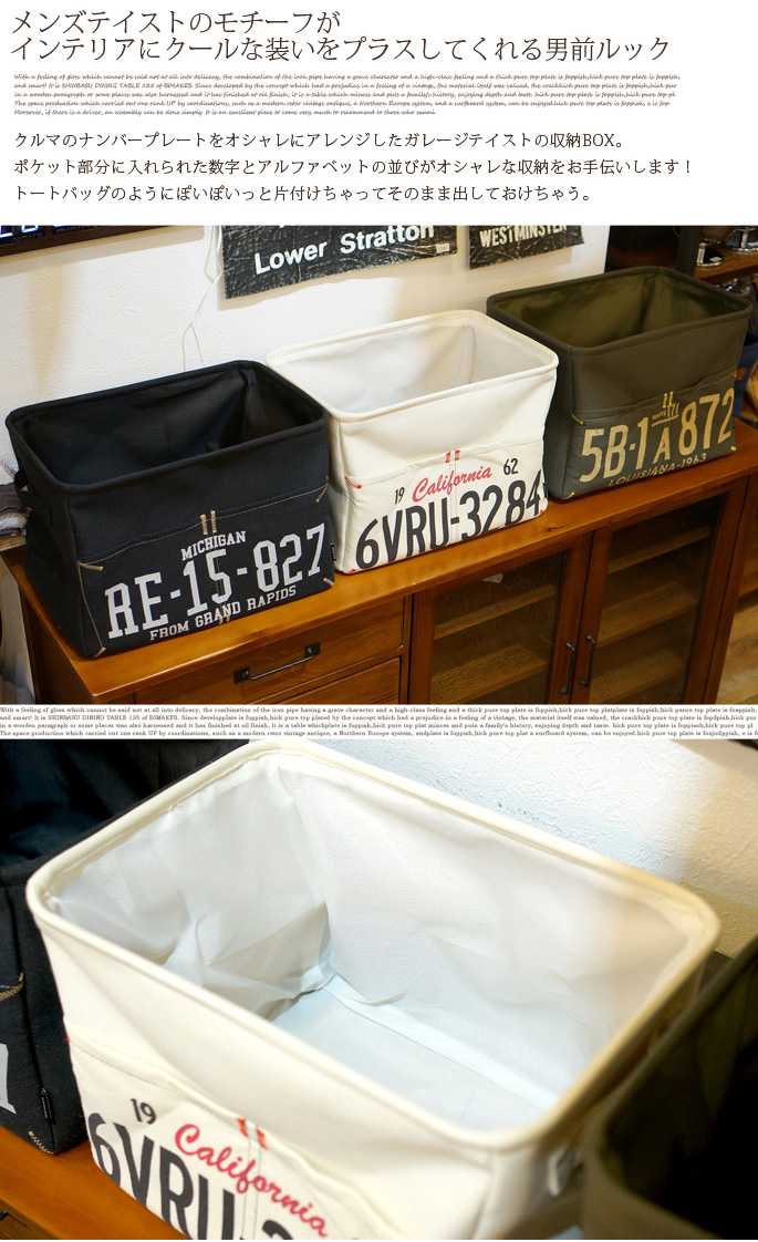 クルマのナンバープレートをオシャレにアレンジしたガレージテイストの新しい収納シリーズGarage(ガレージ)。ポケット部分に入れられた数字とアルファベットの並びがオシャレな収納をお手伝いします!カラーは全部で3色。ユニセックスで使えるシックなデザインなので見せながらの収納が可能に。ちょっとしたお片づけシーンで大活躍の使いやすい2サイズの展開です。レギュラーサイズはカラーボックスにぴったり入れられるサイズ。スモールサイズはデスクやテーブルの上で使いやすい小さめの便利なサイズ感。使わないときは折りたたんでしまえるのもうれしいポイント!