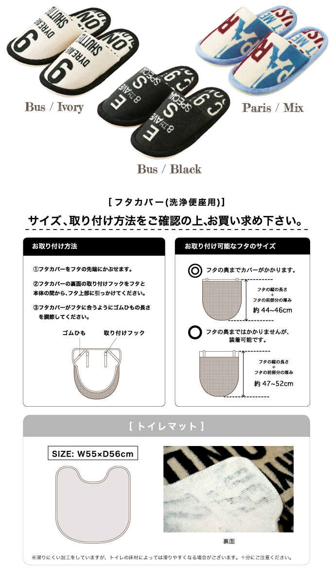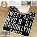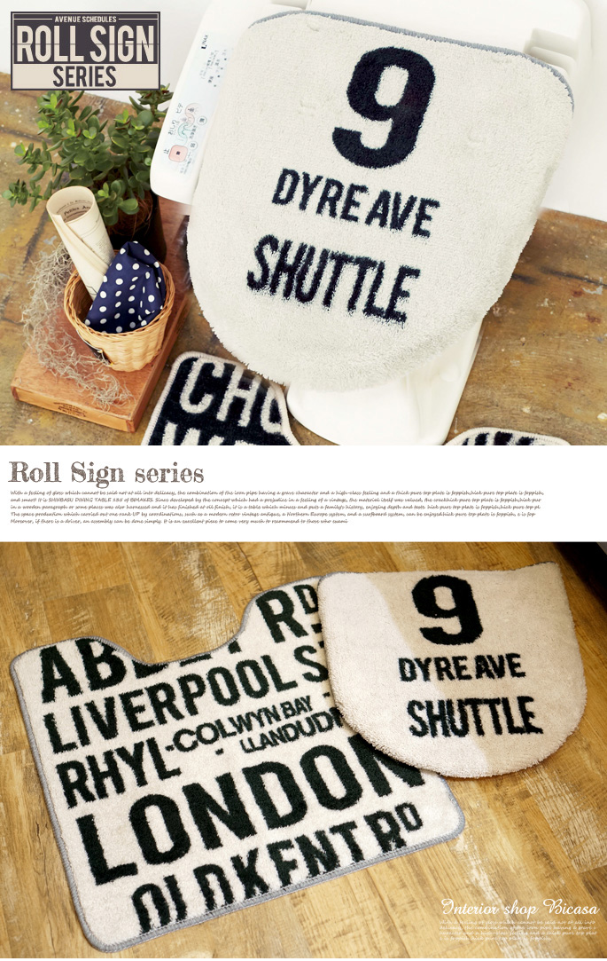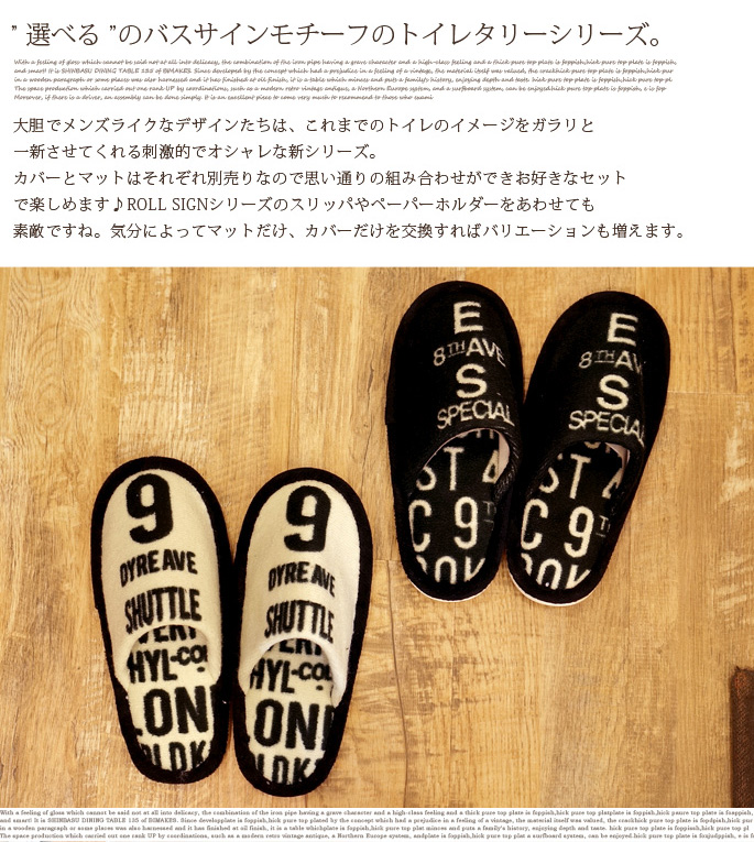 バスの正面にある行き先表示。今では電光掲示板が多くなりましたが昔はプリントされたものをロール状に巻き取るものが使われていました。そんなロールサインをモチーフにクールでメンズライクな表情のオシャレなミニマットができました。シックなカラーリングはユニセックスで使える全6デザイン。もともとの生地の上から、シルクスクリーンを使って絵の具を染み込ませる技法を用いてデザインを描き出しています。少し長めに毛足をそろえているのでふっくらとした肌触りとクッション性が自慢です。
