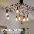 インターフォルム(INTERFORM)のArtesia lattice(アーティシア ラティス) LT-1996・LT-1997・LT1998は10灯のペンダントを調整し映画やドラマのセットのような天井演出を楽しめる天井照明です。すっきりとしたフレームとねじりコードにマッチしたソケットが多灯ではあるもののすっきりとした印象を与えるので、リビングだけでなく、ダイニングや寝室など、どんな空間にもフィットします。用途に合わせて電球(白熱球・LED)有、無が選べるようになっております。