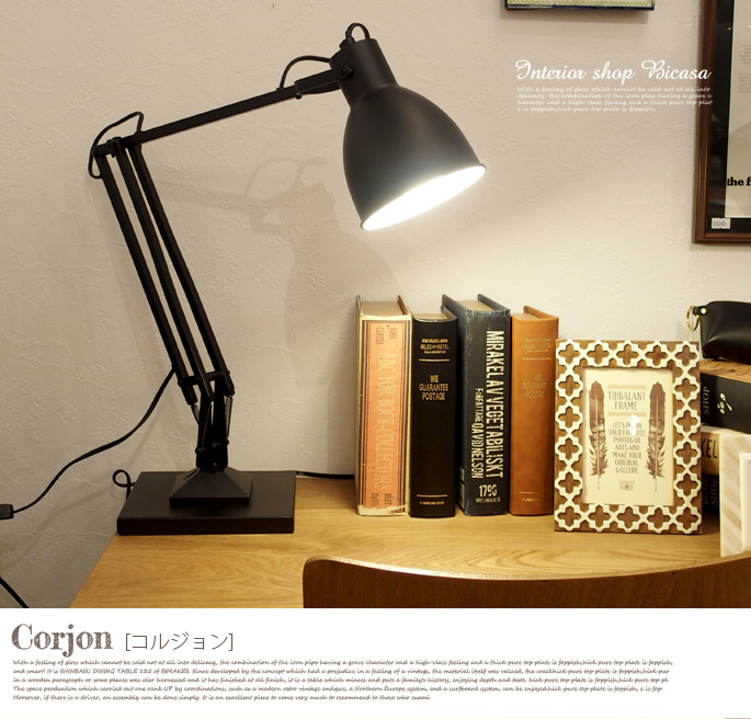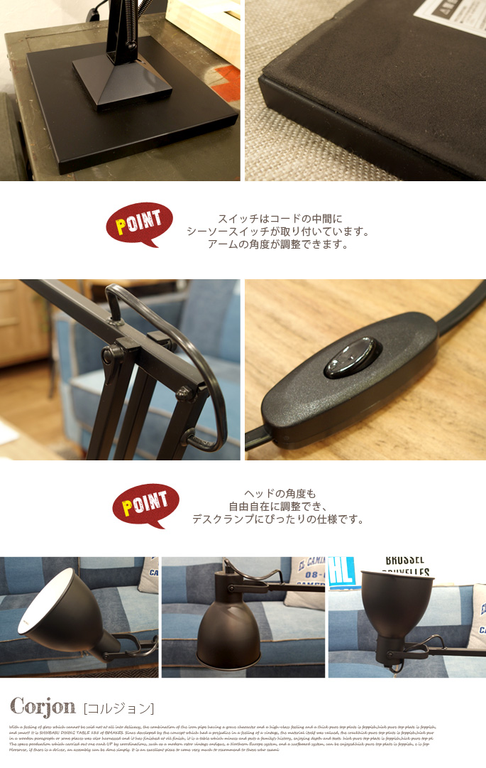 直線的なアーム部分と丸みを帯びたヘッドの組み合わせが普遍的なデザインのデスクライト。ヘッドやアームの角度も調節ができ、手元をうまく照らしてくれます。長く使える落ち着いたデザインはブラックとホワイトの2色から。スイッチはコードの中間にシーソースイッチを取り付けました。