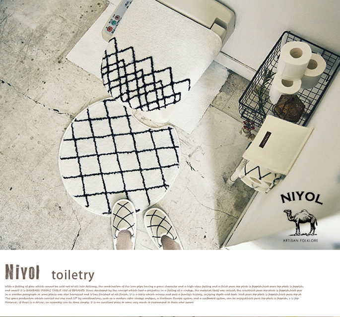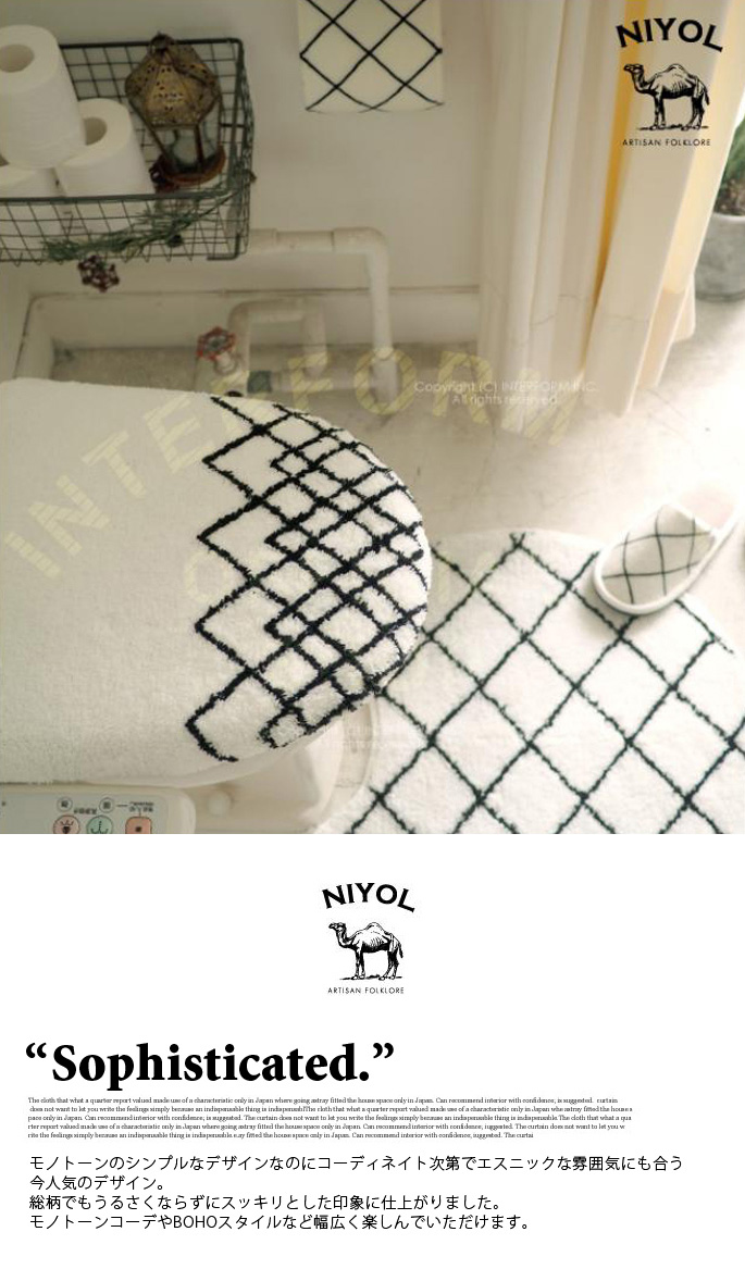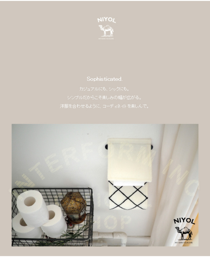 オフホワイトのベースに格子状に走る細いブラックのライン。シンプルな中にフォークロアな印象を隠し持った人気のデザインをトイレタリーにインストール。モノトーンのシンプルなデザインなのにコーディネイト次第でエスニックな雰囲気にも合う今人気のデザイン。総柄でもうるさくならずにスッキリとした印象に仕上がりました。モノトーンコーデやBOHOスタイルなど幅広く楽しんでいただけます。