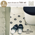 小さな花柄のように見えるハニカムタイルをモチーフにシックでエレガントなトイレタリーシリーズができました。海外のホテルやカフェのようなオシャレなバスルームコーディネイトを楽しんでみて。トイレフタカバー、マットそしてキッチンマットはナイロン製の生地の上からコンピュータ技術を使って全自動でプリントをしています。(写真右)そのため、細かなデザインまで表現できるのが特徴です。また、通気性のいい生地を使用しているので尾選択後もすばやく乾いてくれます。ペーパーホルダー、ルームスリッパは肌触りのいい柔らかい生地を使用しています。