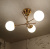 3本の細いアームに合わせた大ぶりなガラスセードが作りだすダイナミックなシルエットは存在感満点。ランダムに見える角度も、心地よいバランス感が計算されています。華やかなゴールドのカラーリングも相まって、海外インテリアのような非日常を味合わせてくれるデザインに。アームの先端にあしらったウッドパーツがクラシカルなエッセンスを感じさせます。※こちらは白熱球タイプの販売ページです。