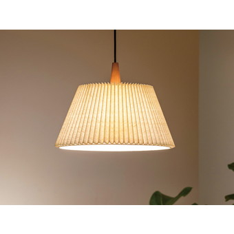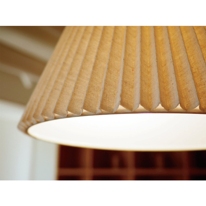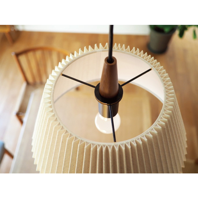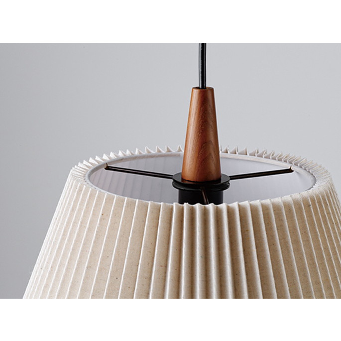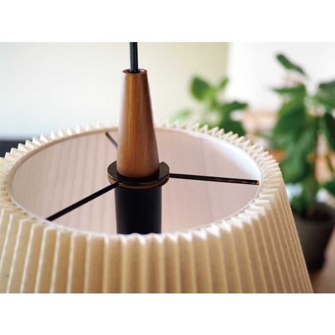 | | ブラックカラーのソケットの上にウッドパーツをあしらいました。素材とカラーのコントラストが品のいい組み合わせです。プリーツを寄せたファブリックセードの内側に、インナーセードを重ねています。点灯させるとファブリックセードから柔らかな明かりが広がります。消灯時もファブリックとウッドパーツの組み合わせがナチュラルで優しい印象です。人気の北欧テイストからナチュラルコーデまで、リラックスした時間を過ごす場所を優しく照らします。上側も大きく開いているので、光が天井側へも広がります。北欧の素朴であたたかみのあるインテリアにインスパイアされた、優しい表情のデザインです。 |