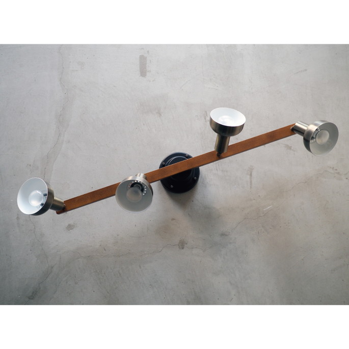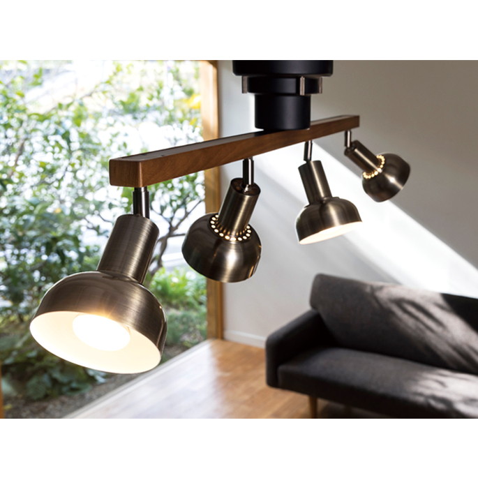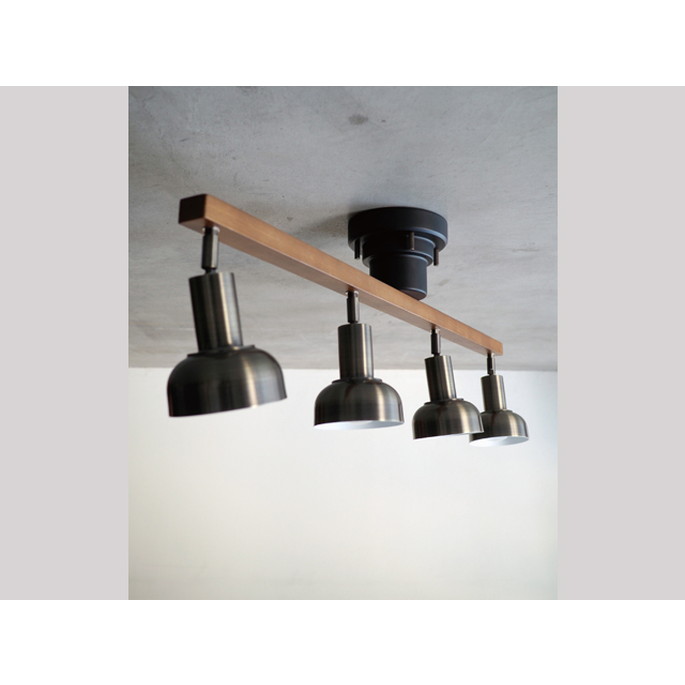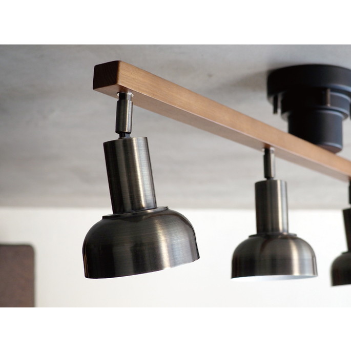 ダークブラウンのウッドバーにゴールドのセードを合わせたビンテージライクなシーリングライト。オーソドックスなスタイルでありながら素材のコントラストを効かせることで、個性のあるルックスに仕上がりました。
