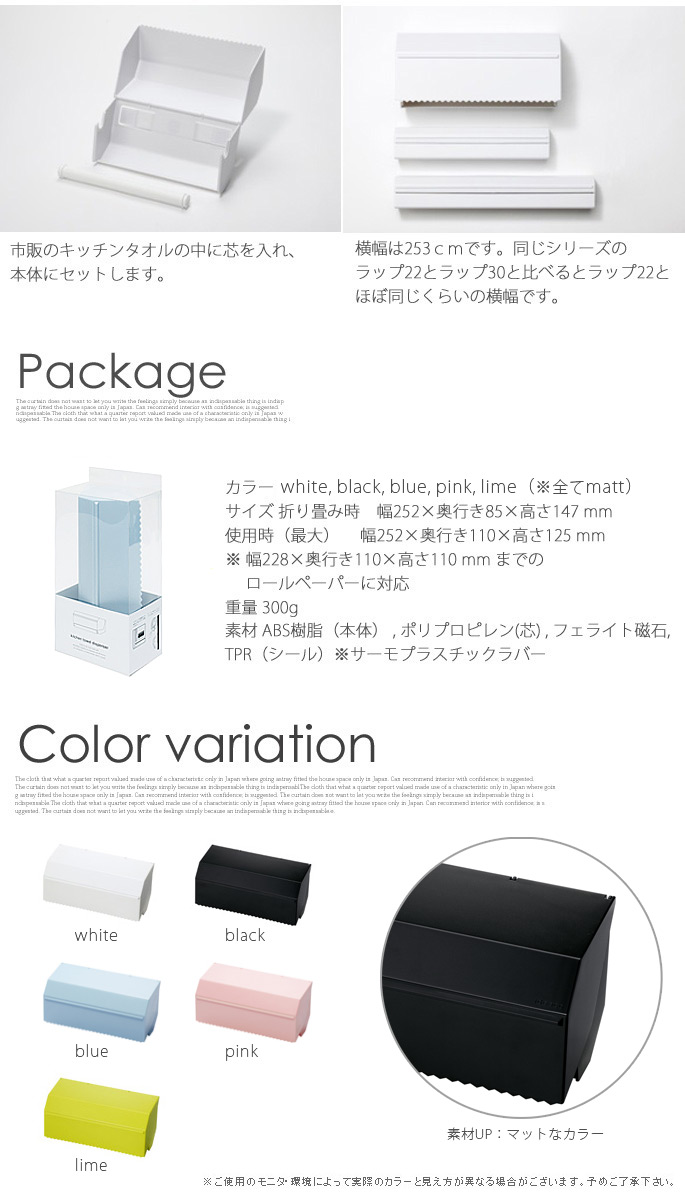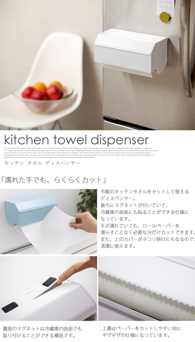 市販のキッチンペーパーやクッキングシートを美しく収納(カバー)出来るイデアコ(ideaco)のキッチンタオルディスペンサー(Kitchen towel dispenser)です。後ろ側にはマグネットが付いていますので、冷蔵庫に貼ることができ隠したくても収納場所に困るキッチンタオル(キッチンタオル)類を素敵なインテリアとして変貌させてくれます。7種類の豊富なカラーバリエーションを用意し、簡単便利なキッチンタオルカバーはキッチンの必須アイテムになること間違いなしのアイテムです。プレゼントギフトにも大人気の商品です!
