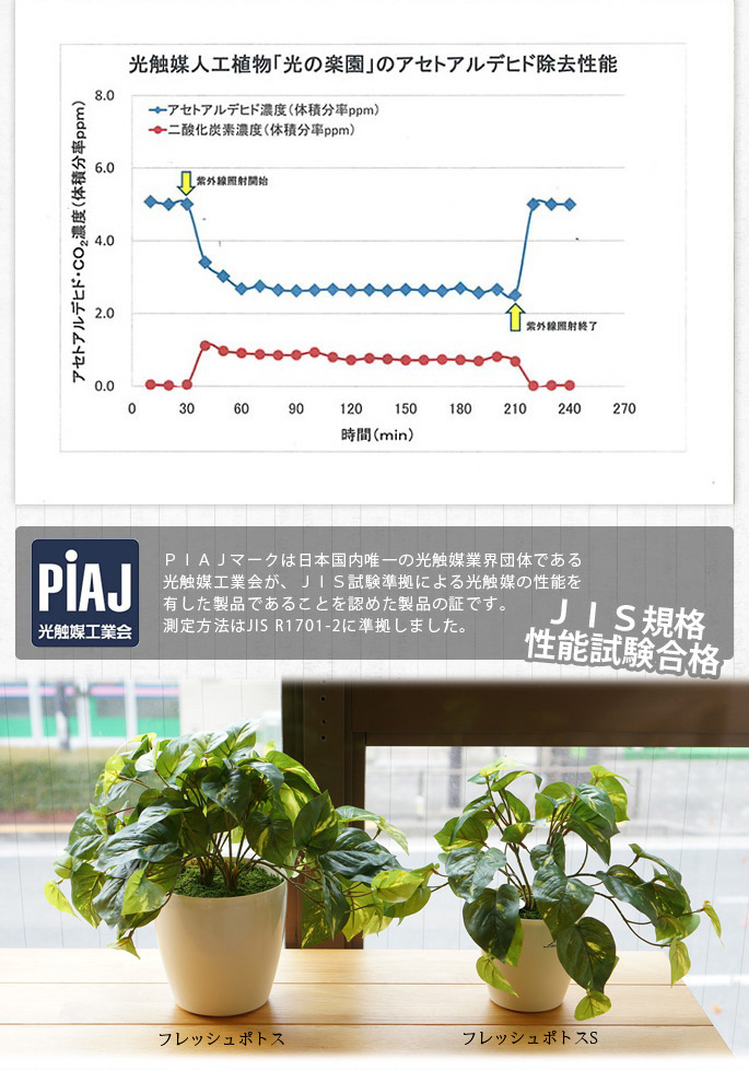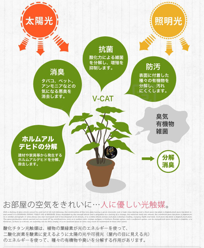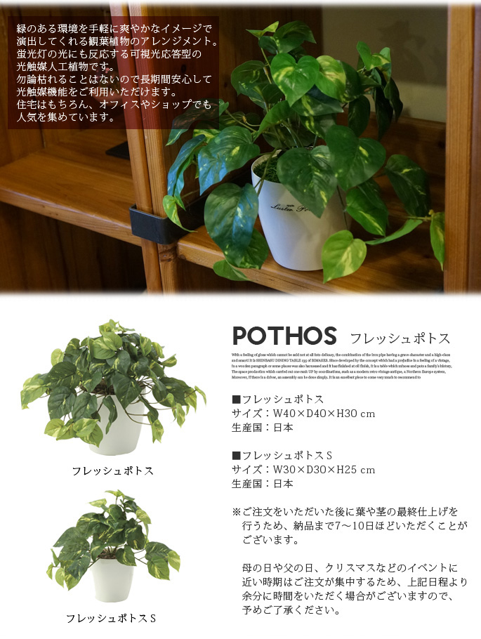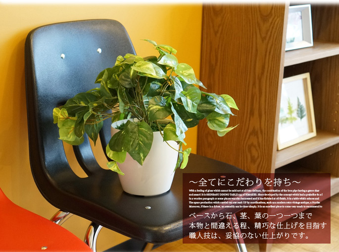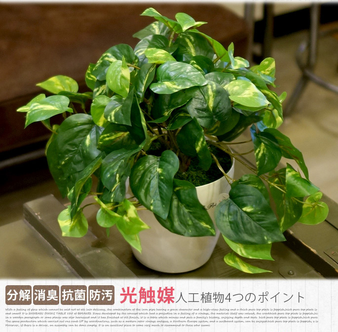 空間に癒しを与えてくれるイミテーショングリーンシリーズは、お手入れの必要が無く、気軽に生活に取り入れられる人工観葉植物です。リビングや寝室、書斎の他、オフィスや店舗などの使用にもおすすめです。防汚・抗菌・消臭効果を発揮する酸化チタン光触媒仕となっていますので、クリーンな環境を維持し、観葉植物が持つリラックス効果をさらに高めてくれます。