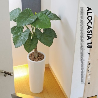 空間に癒しを与えてくれるイミテーショングリーンシリーズのくわず芋は太い幹と大きな葉が空間に絶妙なアクセントを加えるフェイクグリーンです。また、お手入れの必要が無く、気軽に生活に取り入れられる人工観葉植物です。リビングや寝室、書斎の他、オフィスや店舗などの使用にもおすすめです。防汚・抗菌・消臭効果を発揮する酸化チタン光触媒仕様となっていますので、クリーンな環境を維持し、観葉植物が持つリラックス効果をさらに高めてくれます。