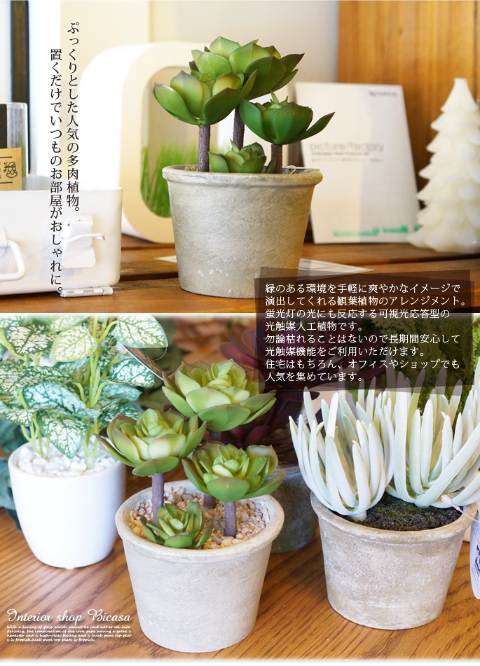 空間に癒しを与えてくれるイミテーショングリーンシリーズのアガベポットは多肉植物ならではの独特の形が空間に絶妙なアクセントを加えるフェイクグリーンです。また、お手入れの必要が無く、気軽に生活に取り入れられる人工観葉植物です。リビングや寝室、書斎の他、オフィスや店舗などの使用にもおすすめです。防汚・抗菌・消臭効果を発揮する酸化チタン光触媒仕様となっていますので、クリーンな環境を維持し、観葉植物が持つリラックス効果をさらに高めてくれます。