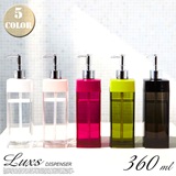 化粧瓶のような透明感と光沢が美しい♪デザイン性の高いディスペンサーシリーズ!YAMAZAKI(ヤマザキ)の【LUXS DISPENSER L(ディスペンサー ルクスL)】です。モダン&エレガントでサニタリルームやバスルームをオシャレに演出できちゃいます♪シンプルで光にあたるとキラキラと影までデザイン美しいスクエア型のディスペンサー(容器)は底部が球面になっていますので、最後まで使い切りやすい構造となっています。カラーはホワイト・ブラック・ピンク・グリーン・ローズの5色展開でバリエーションも豊富です。プレゼント(ギフト・贈物)としても喜ばれる逸品でLサイズとSサイズの2サイズ展開です!