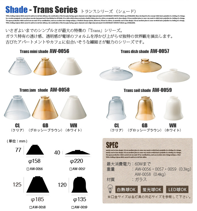 アートワークスタジオ(ART WORK STUDIO)のトランスジャムシェード(Trans jam shade) AW-0058はレトロ感漂うガラスの雰囲気を生かしたデザインが魅力の照明部品です。ビンテージ・レトロ感あふれるフォルムはリビングダイニングや寝室、書斎などを個性的に演出します。