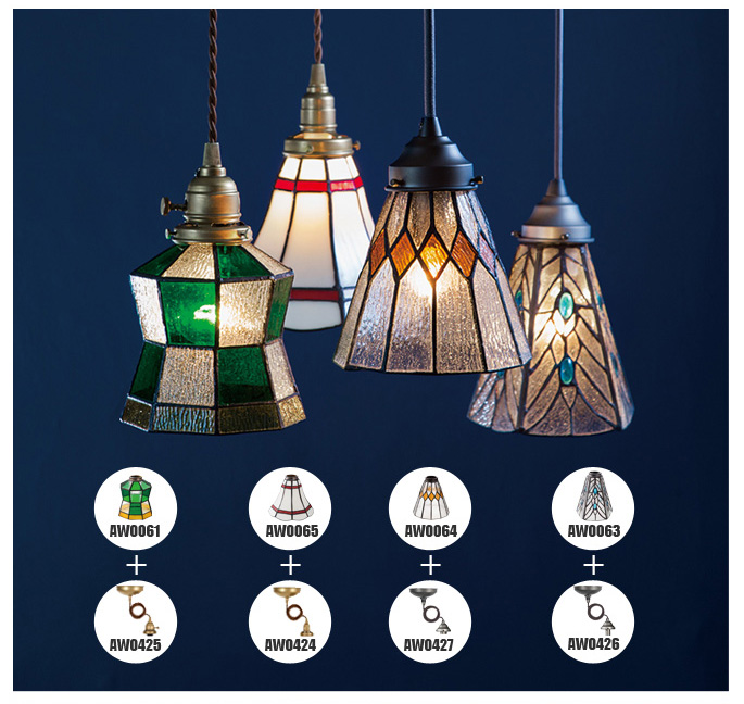 アートワークスタジオ(ART WORK STUDIO)のドッツシェード(Dots shade) AW-0062はクラッシックな雰囲気が漂うステンドグラスが個性的な雰囲気を演出する照明部品です。ビンテージ・レトロ感あふれるフォルムはリビングダイニングや寝室、書斎などを個性的に演出します。