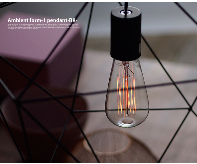 アートワークスタジオ(ART WORK STUDIO)のアンビエントフォーム2ペンダント(Ambient form2-pendant) AW-0471Z・AW-0471Vは、宙に浮いたような電球を幾何学的なフレームが囲むアーティスティックな天井照明です。存在感あふれるフォルムはリビングや寝室、書斎など、様々なお部屋をおしゃれ、かつ個性的に演出します。お好みに合わせてカラーがブラック、ホワイトの2色からお選びいただけ、電球無し、電球有(クリア電球E26の口金60W)をお選びいただけます。