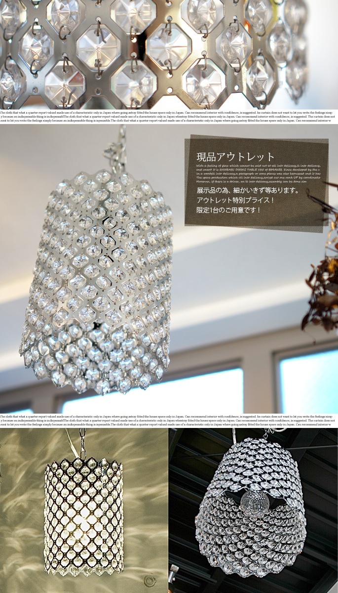 アートワークスタジオ(ART WORK STUDIO)のジプシーペンダント(Gypsy-pendant)【AW-0232】はエキゾチックモダンで不思議な光を放つペンダントライトです。格子状に加工されたシェードにクリアガラスを施し、明かりをつけるとその一つ一つが光を透過し大きく輝きます。シンプル且つゴージャスな雰囲気が空間に圧倒的な存在感を発揮し、演出効果の高いデザイン照明です。※展示品入替えの為のアウトレット品扱いとなります。状態はかなり良いです。