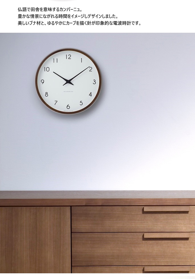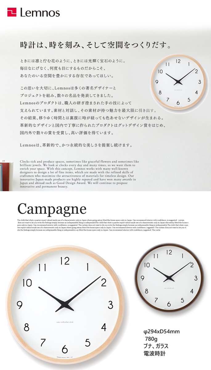 レムノス(Lemnos)のカンパーニュ(Campagne) PC10-24W 掛け時計はブナ材の無垢を使用した素朴な風合いが温かみのある雰囲気を演出するウォールクロックです。時刻合わせいらずの電波時計なので使い勝手も良い仕様となっております。サイズは直径29.4cm 奥行5.4cmとなっており視認性の高いサイズとなっております。カラーはナチュラル、ブラウンの2色となっており、各種お祝いなどのギフトやプレゼントにもおすすめです。