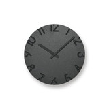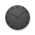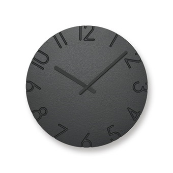 2010年に発表、グッドデザイン賞を受賞したCARVEDシリーズの新バリエーション「CARVED COLORED」です。文字盤に色をつけることによって、彫り込んだ文字が色のグラデーションのようにも見え、 ミニマムなフォルムながらも空間に色のアクセントを与えます。文字盤から文字を彫刻刀で彫り取ったような印象を与えるこの時計は、グラフィックをフォルムとして扱うことを試みています。彫り込まれた文字の落とす陰影が文字盤に立体感を与え、周囲の光環境に応じて表情を変えます。