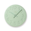 珪藻土とは、藻類の一種である珪藻が海底に堆積し、長い年月を経て岩石となったもの。その珪藻土を使用し、日本の伝統技能である「左官」の技術を用いてつくられた掛け時計です。珪藻土の製品は左官職人が一つ一つ手作りしているため、混ぜ合わせた材料を固める際にうまれる色の濃淡などが、模様に見える場合があります。また製品に小さなくぼみやピンホールが見える場合がありますが、これらは素材の特性ですので、ご了承ください。