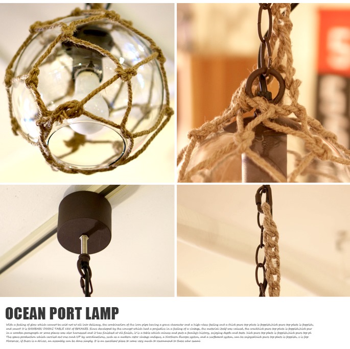 洗練されたスタリッシュなフォルムに紐をあしらいやや無骨感がある雰囲気がおしゃれ!ハモサ(HEMOSA)のOCEAN PORT LAMP(オーシャンポートランプ) GS-002 CRです。アメリカ西海岸の湾岸線レストランテラスをイメージしてつくられたデザインランプです。点灯していただくとガラスからはほんのりとしたやわらかな優しい光りが灯ります。西海岸テイストやレトロ・ビンテージの家具やサーフ系テイスト等にもピッタリなデザインとなっています。カフェやレストランのインテリア照明としてもおすすめです。