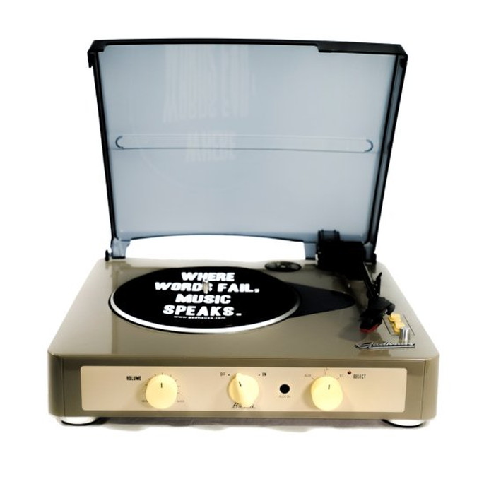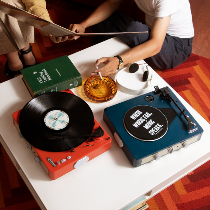 レトロな雰囲気のあるレコードプレーヤー。ビンテージ感がインテリアのアクセントにもなります。複雑な操作も必要がない為、レコードプレーヤー初心者の方でも簡単に楽しめます。