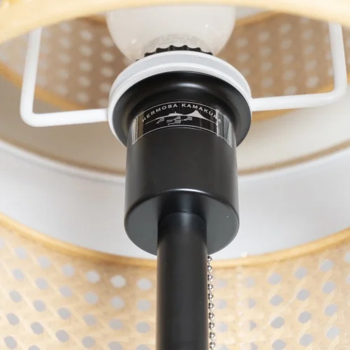 人気のリーデンシリーズより、フロアタイプが登場。ヨーロッパの展示会などで多く使われているバンブープラスティックを使用し、軽量で丈夫、また環境に優しいプロダクトを目指しました。艶を消したブラックの支柱と、シェードのコントラストが美しく、点灯時に漏れる光までデザインされた、ハモサの新作フロアライトです。
