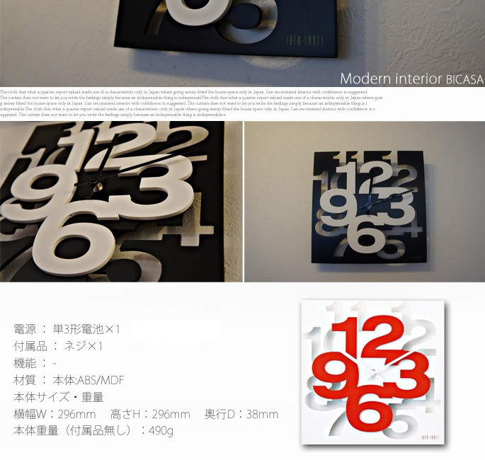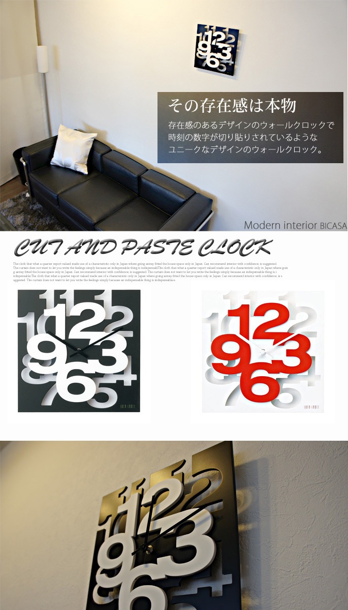イデア(IDEA)のカットアンドパステクロック(CUTANDPASTECLOCK)は数字が切り張りされているようなユニークなデザインが特徴の掛時計です。見やすい文字盤とすっきりとしたフォルムはリビングやダイニングの他、寝室や書斎、子供部屋など、様々なお部屋で活用できます。カラーはレッドの数字が絶妙なアクセントを加えるホワイトの他、シックな雰囲気を醸し出すブラックの2色からお選びいただけます。 |