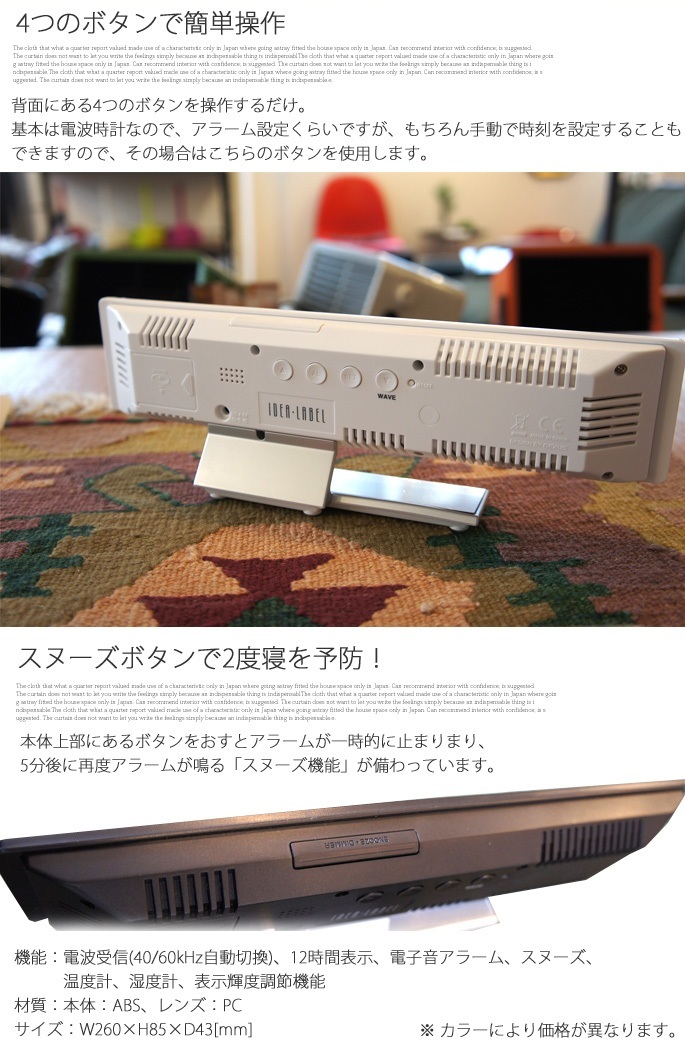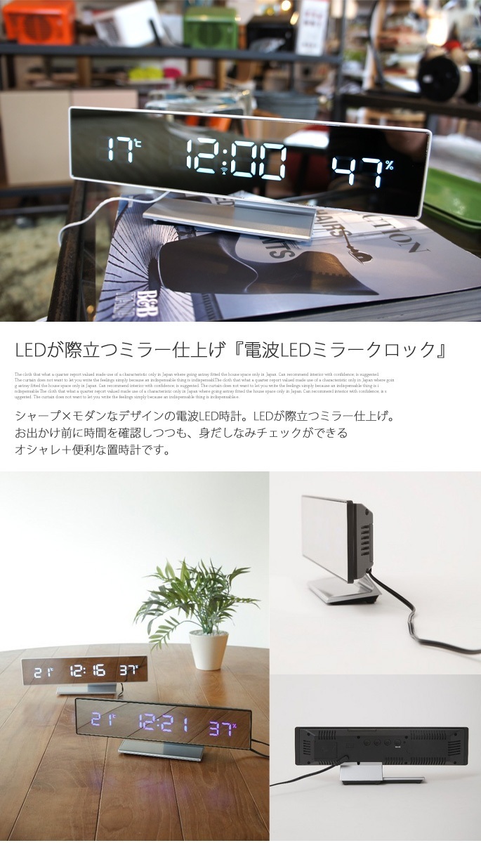 | 製品名 | 電波LEDミラークロック イデアレーベル 置時計 LCR106-BK/BL LCR106-WH/WH |