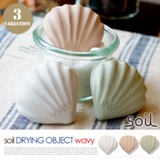 調湿性や消臭性に優れ、見た目もキュートなフォルムが愛らしい乾燥剤♪Soil(ソイル)DRYING OBJECT(ドライングオブジェクト)クルーヴドです。「Soil」シリーズは、日本独自の素材・技術を用いた高品質の日用品で、全ての製品に使用される珪藻土(けいそうど)は、「呼吸する自然素材」と呼ばれ、保湿性や吸水性に優れ、水気をサラリと吸い取って大気中に放出してくれます。製品は左官職人による手作りで製作され、メーカーであるイスルギは、大正6年の創業から80余年に渡り左官技術を守り続ける老舗です。珪藻土の主成分は植物性プランクトン類の化石、珪藻殻の堆積物なので、寿命がきたら土に還るエコ素材です。日本では古くから建材などに使用されているので、耐久性も安心です。