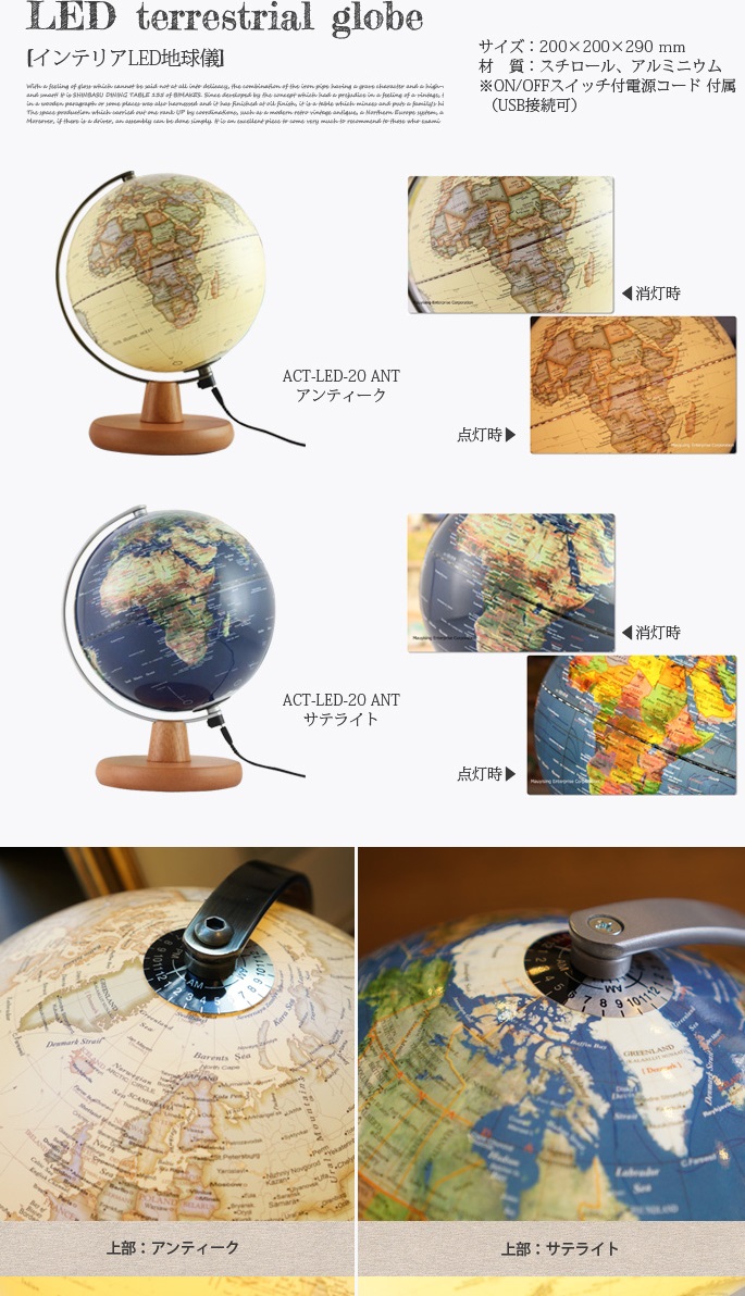 | 製品名 | LED地球儀 直径20cm ACT-LED-20 |