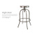 スチールが絶妙にマッチしたフォルムとシンプルであるものの独特の存在感を発揮するデザインが魅力の ヴィンテージ インダストリアルハイスツール(Vintage Industrial High Stool)です。レトロ感漂うスチールフレームとあえて錆が出ている仕様は懐かしさを感じさせつつ、他にはないおしゃれな雰囲気を演出します。背もたれが付いていない為、圧迫感を感じさせることなく、且つ座ったり立ったりの生活動線もご利用いただけ易いのも魅力的です。置く場所を選ばないシンプルなデザインとスッキリとしてフォルムはカウンター前は勿論のこと、リビング、ダイニングキッチン、寝室など様々なシーンで活用できます。※座高サイズは高さ67cm-81cmの高さまで調整ができます。(※一般的な目安として座面の高さから20-30cmぐらい上にテーブルの高さがあるとご利用頂き易くなります。)