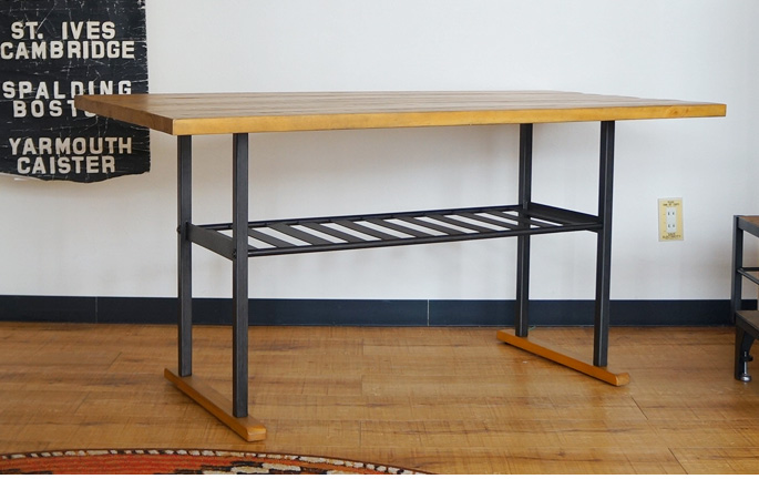 ナチュラルな風合いを感じさせつつ、ウッドならではのあたたかみと優しさを感じさせる天板とアイアンを使用したリビングダイニング用テーブル!ビメイクス(BIMAKES)のFOWLER MIDDLE TABLE(ファウラーミドルテーブル)です。サイズはW1300×D680×H650mmで天板下には、雑誌や新聞・本、リモコンやティッシュなどを置けるスラッツ棚を採用したミドルテーブルです。LDソファ用のテーブルとして食事やティータイムを愉しむことができるプロダクトです。
