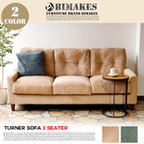 60年代のトラディショナルデザインをモチーフにデザインの構想から生地、糸、素材選び座り心地を左右する内部構造まで・・・細部にわたりこだわりぬいたBIMAKES(ビメイクス)のTURNER Cushion(ターナークッション コーデュロイ) です。背及び座クッションの生地には、60年代に流行したアメリカならではのライフスタイルに根付いたコーデュロイ生地をベージュとグリーンで用意し、肌触り滑らかな質感で仕上げたプロダクトとなっています。旧き良き伝統的なフォルムと製法、色を再現しつつ、心地よい座り心地を追求したソファとなっています。