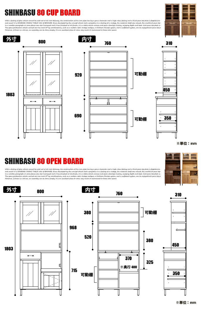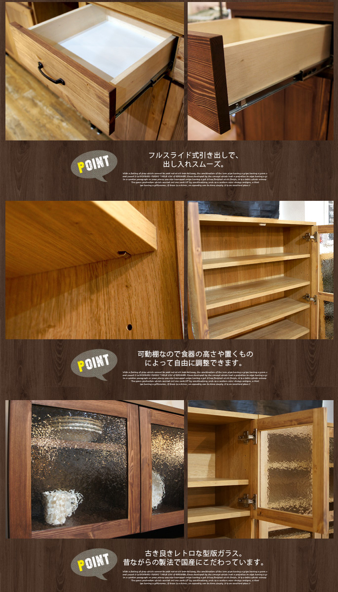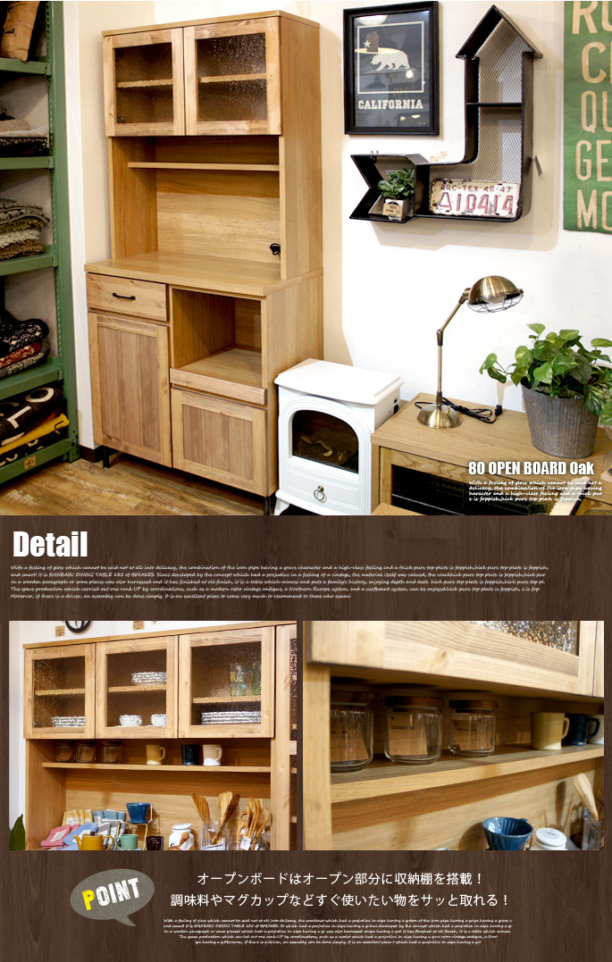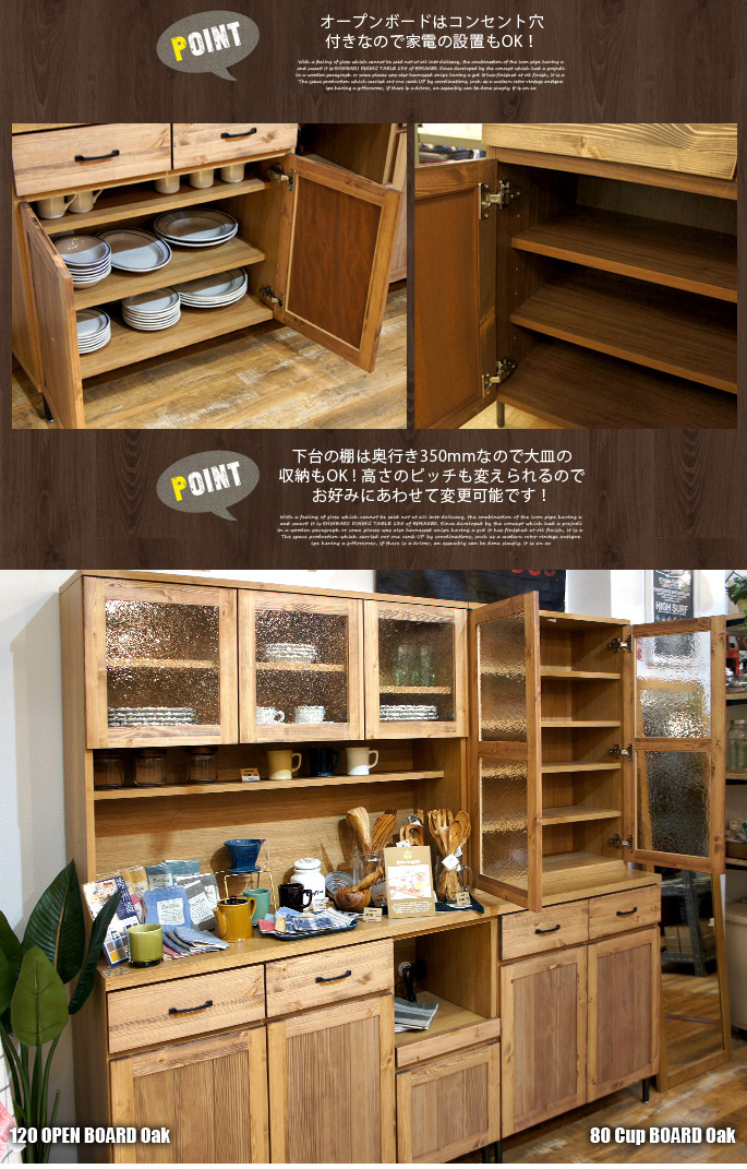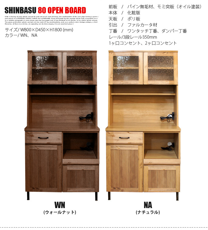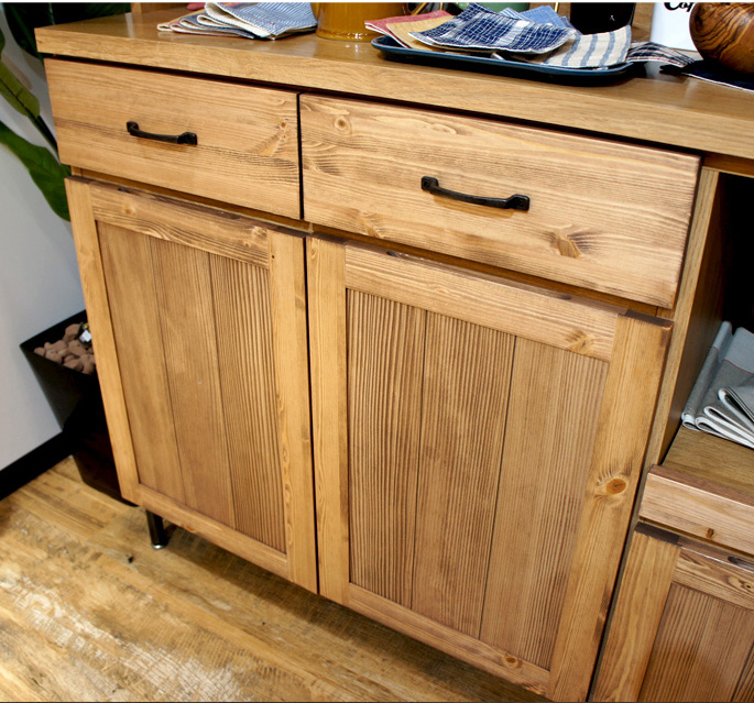 味わい深い天然木のヌクモリを感じるSHINBASUシリーズに豊富な収納を兼ね備えたダイニングボードが登場!BIMAKES(ビメイクス)のSHINBASU OPEN BOAD 120(シンバスオープンボード120)です。同シリーズならではのオイルフィニッシュ仕上げにこだわり、天然木ならではのナチュラルな質感と使い易さにこだわった逸品です。上台のオープンスペースには電子レンジや炊飯器、ポット等が設置できる空間があり、下台には頑丈で滑らかに引き出し易い引出が付き、上台・下台ともに食器が入れやすい構造で収納力があるダイニングボードとなっています。またガラスには現在では生産が難しくなった昔ながらの製法にこだわった、サハラクリア仕様となっています。カラーはナチュラルとダークブラウンの2色展開です。