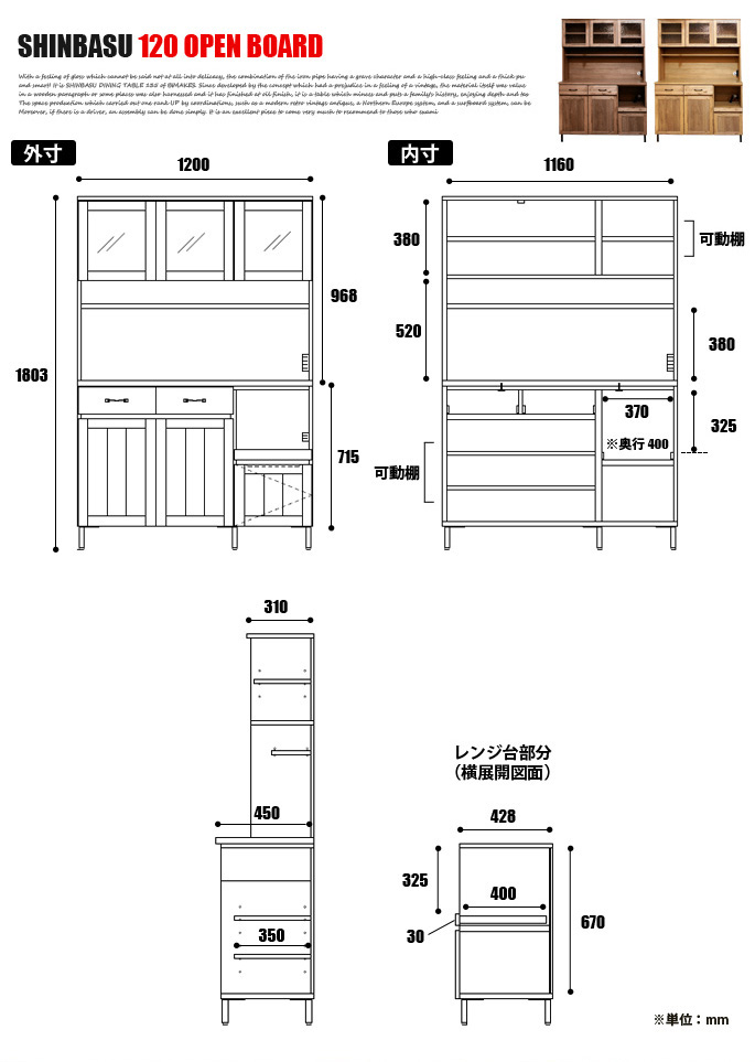 | 外寸法 | 幅1200mm × 奥行450mm × 高さ1800mm |