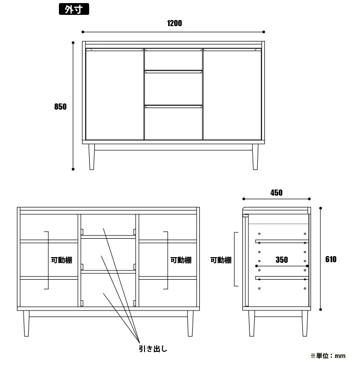 | 外寸法 | 幅1200mm × 奥行460mm × 高さ1000mm |
