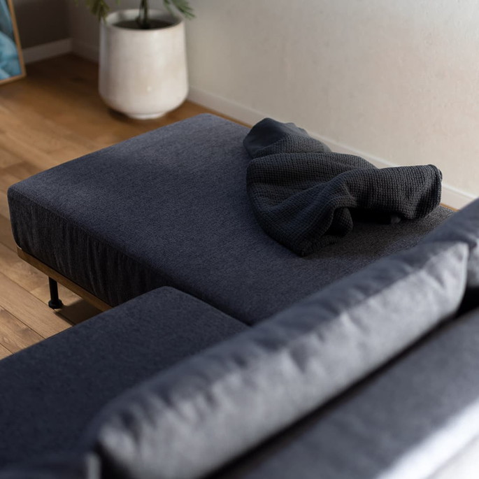 | | 柔らかな肌触りと異なる糸を織り込んだ立体的感のあるデザイン。厚みもあり丈夫でしっかりとした生地です。お手入れがしやすく、座クッションは取り外して掃除機がかけられます。ファブリック部分は全て取り外せるフルカバーリング仕様で、取り外してドライクリーニングでのお手入れが可能です。また、ソファ下の高さは15cmでお掃除ロボットが使える設計です。ダークグレーとグレーからお選びいただけます。 |