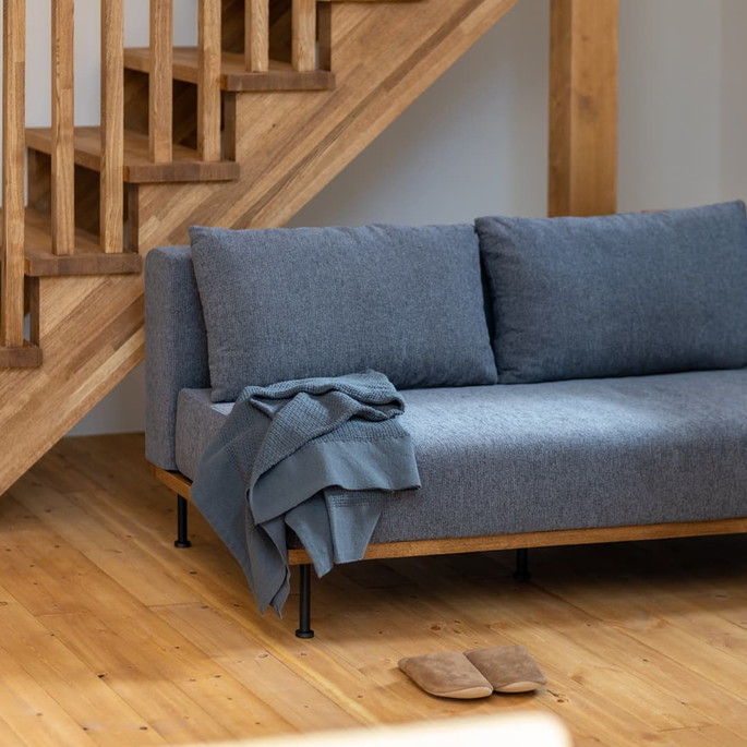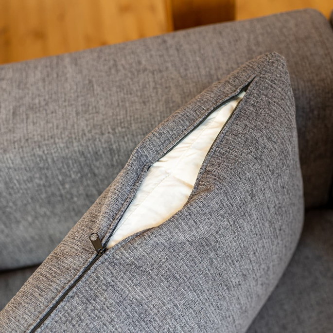 | | 柔らかな肌触りと異なる糸を織り込んだ立体的感のあるデザイン。厚みもあり丈夫でしっかりとした生地です。お手入れがしやすく、座クッションは取り外して掃除機がかけられます。ファブリック部分は全て取り外せるフルカバーリング仕様で、取り外してドライクリーニングでのお手入れが可能です。また、ソファ下の高さは15cmでお掃除ロボットが使える設計です。ダークグレーとグレーからお選びいただけます。 |