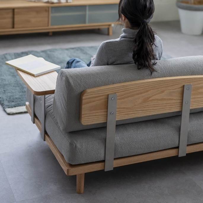 | 材質 | フレーム:オーク無垢材(ウレタン塗装)、ステンレススチール(ヘアライン仕上げ) |