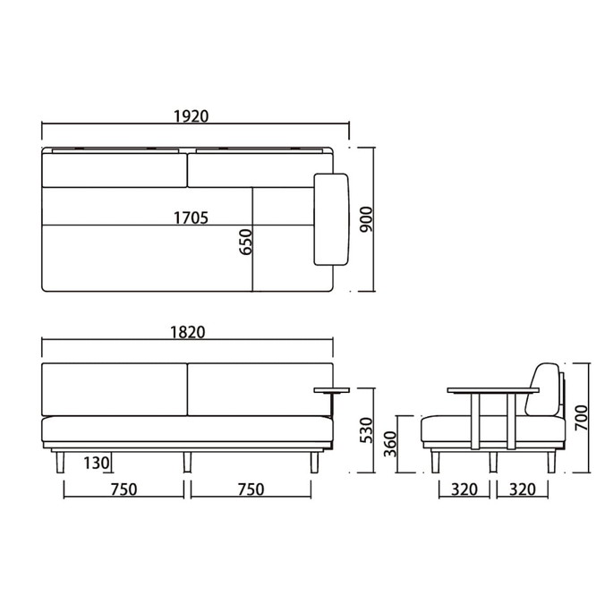 | | サイズ | 幅192×奥行90×高さ70、座高36cm(ロータイプ時:幅192×奥行90×高さ62、座高28cm) |