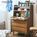 | | 3杯の抽斗の上には、引き出せる可動式天板があり、幅160mmまで引き出せるため、A4サイズの書類を縦に収めることができます。上部の棚板は高さ調整が可能で、背板の右端には配線用の開口をあけています。側板の木口をAROSスライドシェルフと同様にすることで、シリーズとしての一体感を出しています。※脚のみ組み立て式です。 |