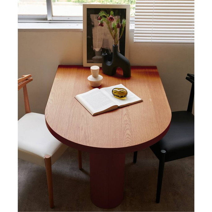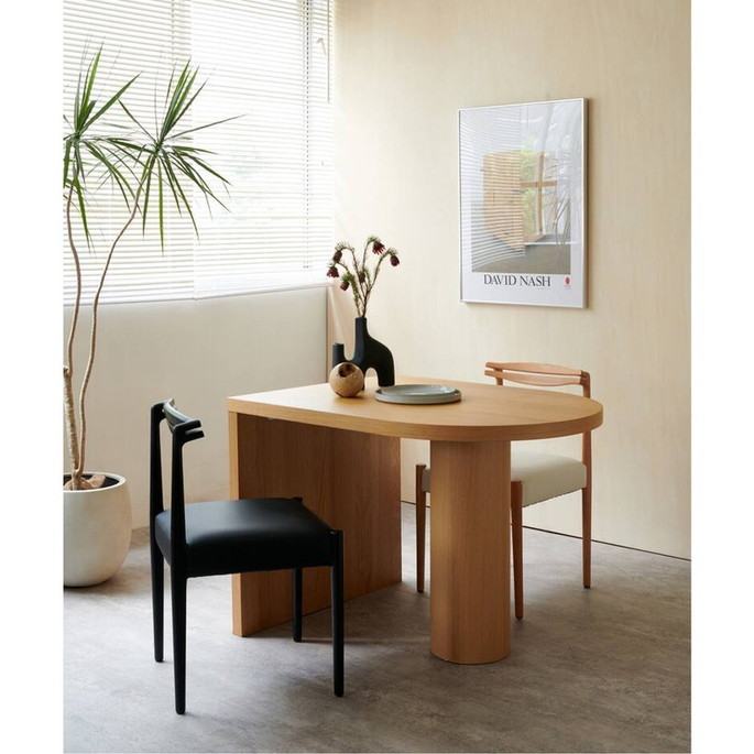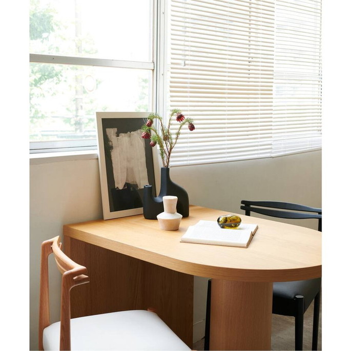 | | 横幅は100cmという、一般的には2人掛けのサイズですが、3人~4人の大人数での着席が可能。アイディア次第で様々な使い方・囲み方ができるテーブルです。片側を壁に付けてご使用いただくのはもちろん、壁から離していただいても空間に変化が生まれ、コーディネートを楽しんでいただけます。 |