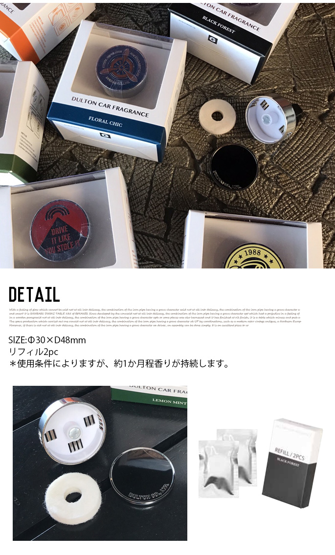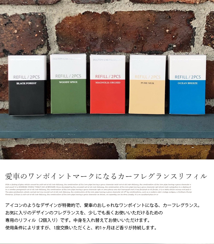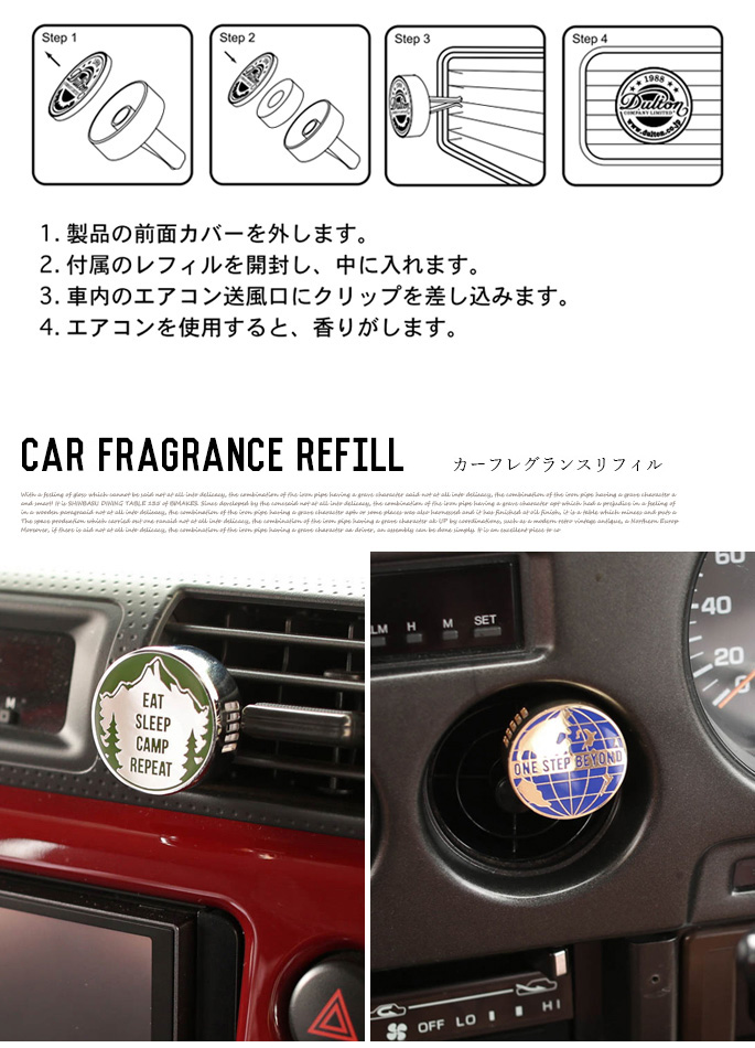 あなたの大切な愛車に、さらにこだわりをプラスしてほしくて、 色々な車をイメージしていたら、9種類ものデザインが出来ました。 厳選されたデザインと香りで、あなたの愛車にぴったりなワンポイントマークをお選び下さい。本体の全面カバーを外して付属のレフィルを開封し、中に入れてご使用ください。