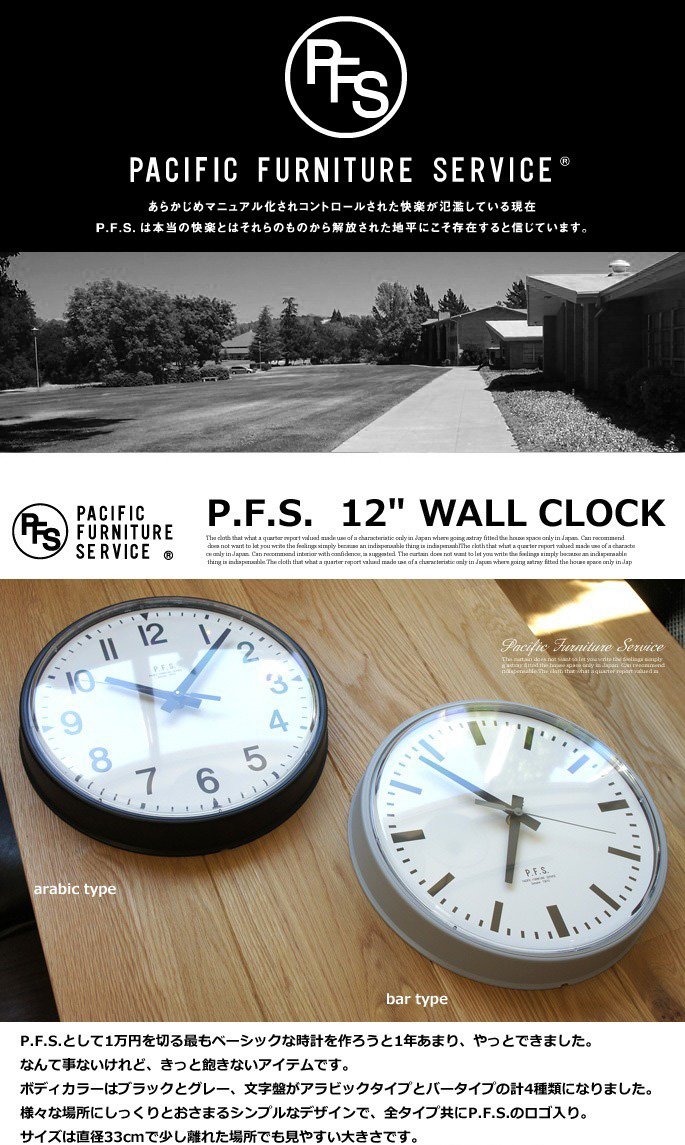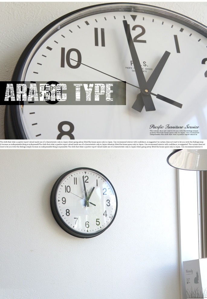 使い勝手の良いシンプルなデザインの中にレトロ感、懐かしさを感じさせるアイテムを展開するPACIFICFURNITURESERVICE(パシフィックファニチャーサービス)の12 WALL CLOCK arabic(12ウォールクロックアラビック) FI2012はすっきりしたデザインの中にも使い勝手を追求した作り手のこだわりを感じさせる掛時計です。クラッシックでレトロな雰囲気漂うこだわりのデザインはヴィンテージテイストのインテリアや北欧モダン、カジュアルモダンデイストのお部屋など、幅広いシーンで活用できます。