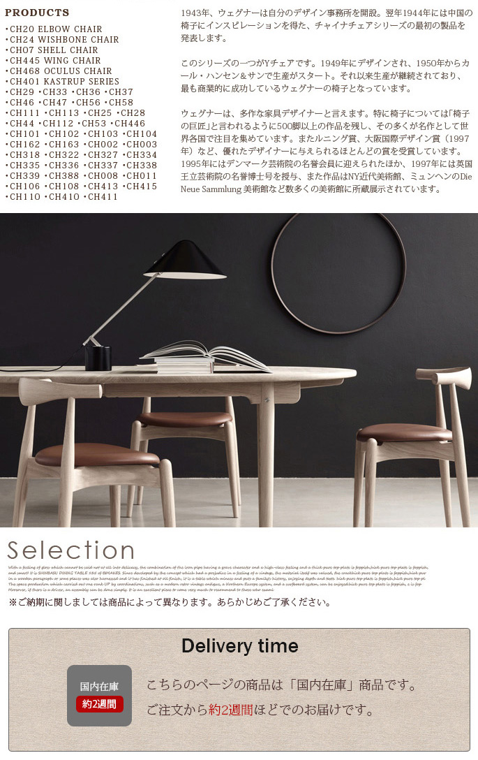 | 製品名 | ELBOW CHAIR CH20 チェア THOR 301 306 307 |
